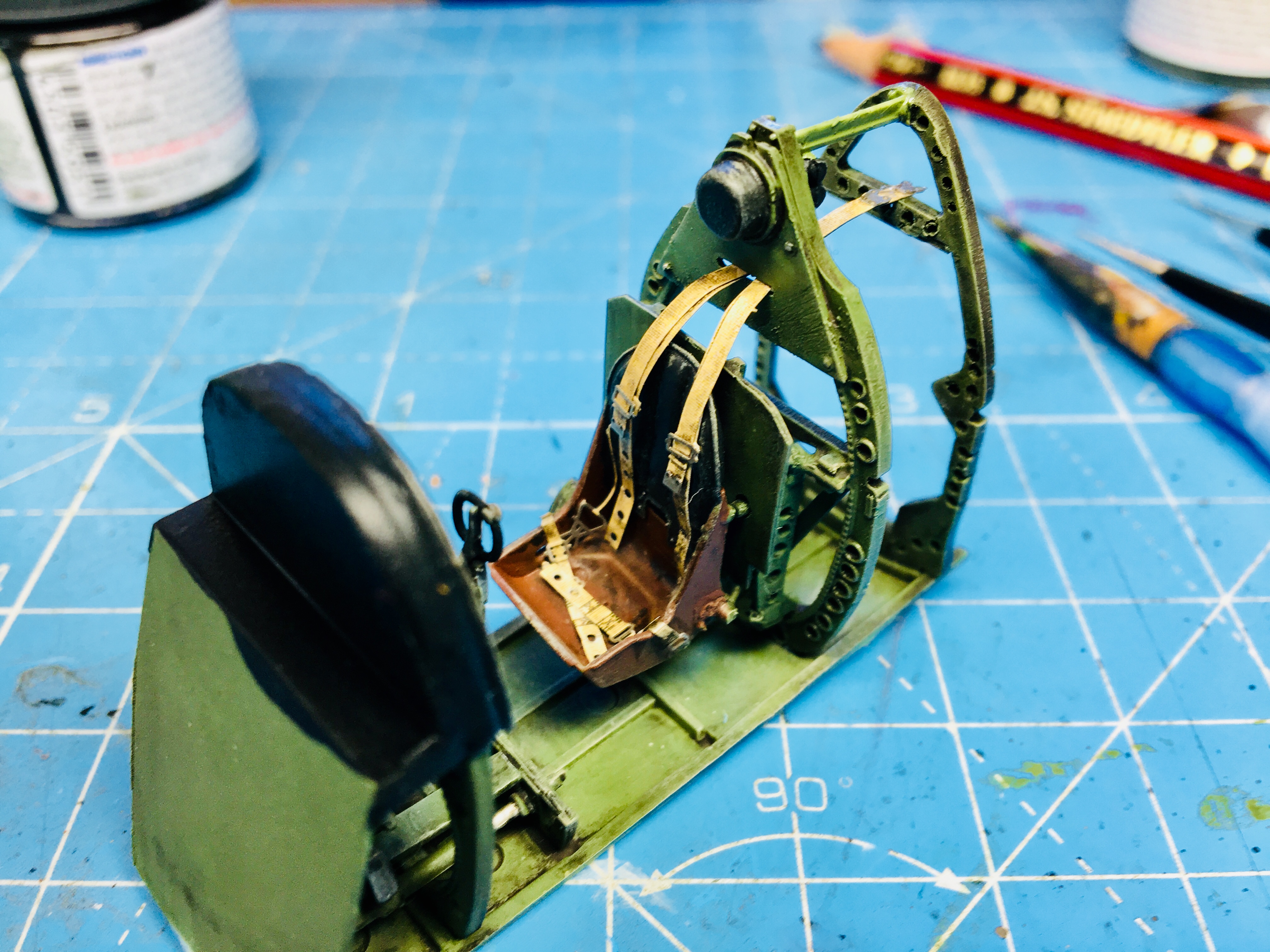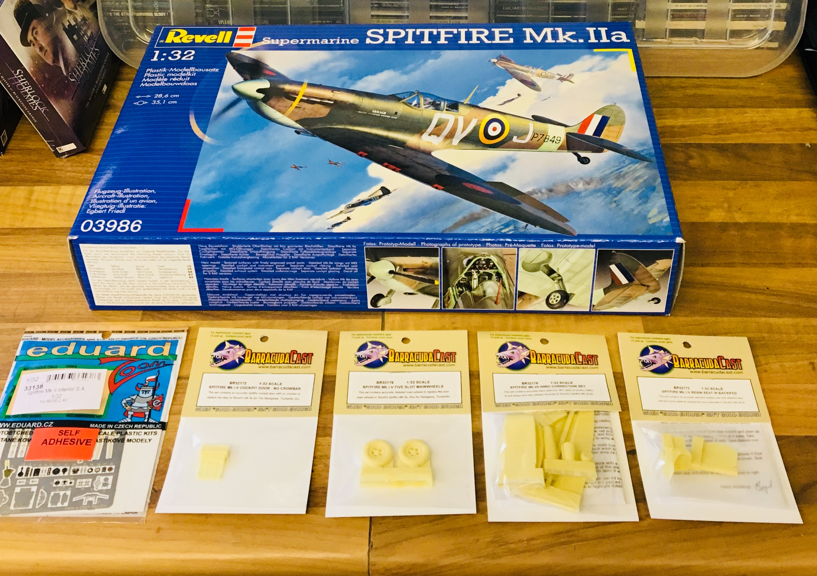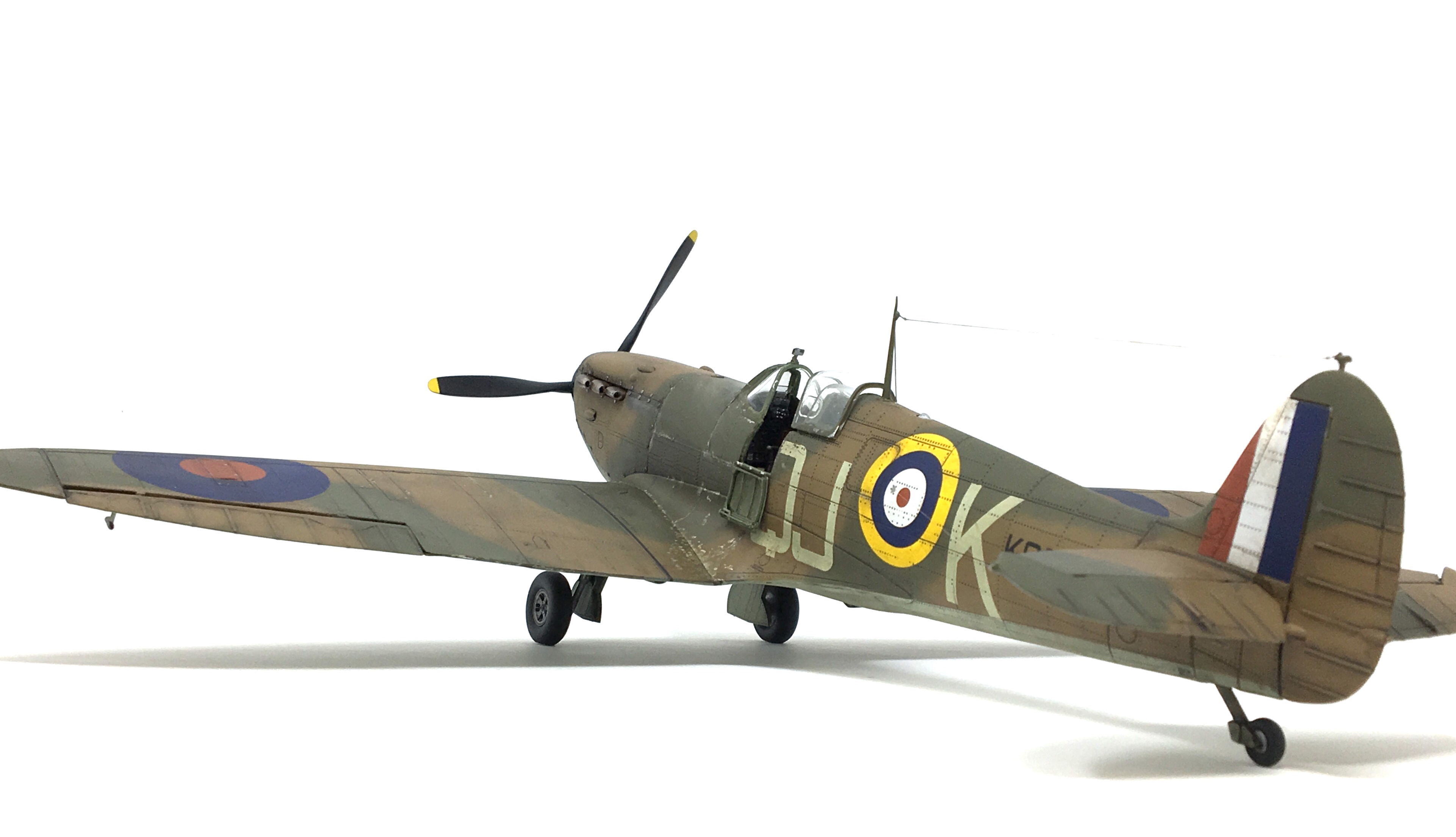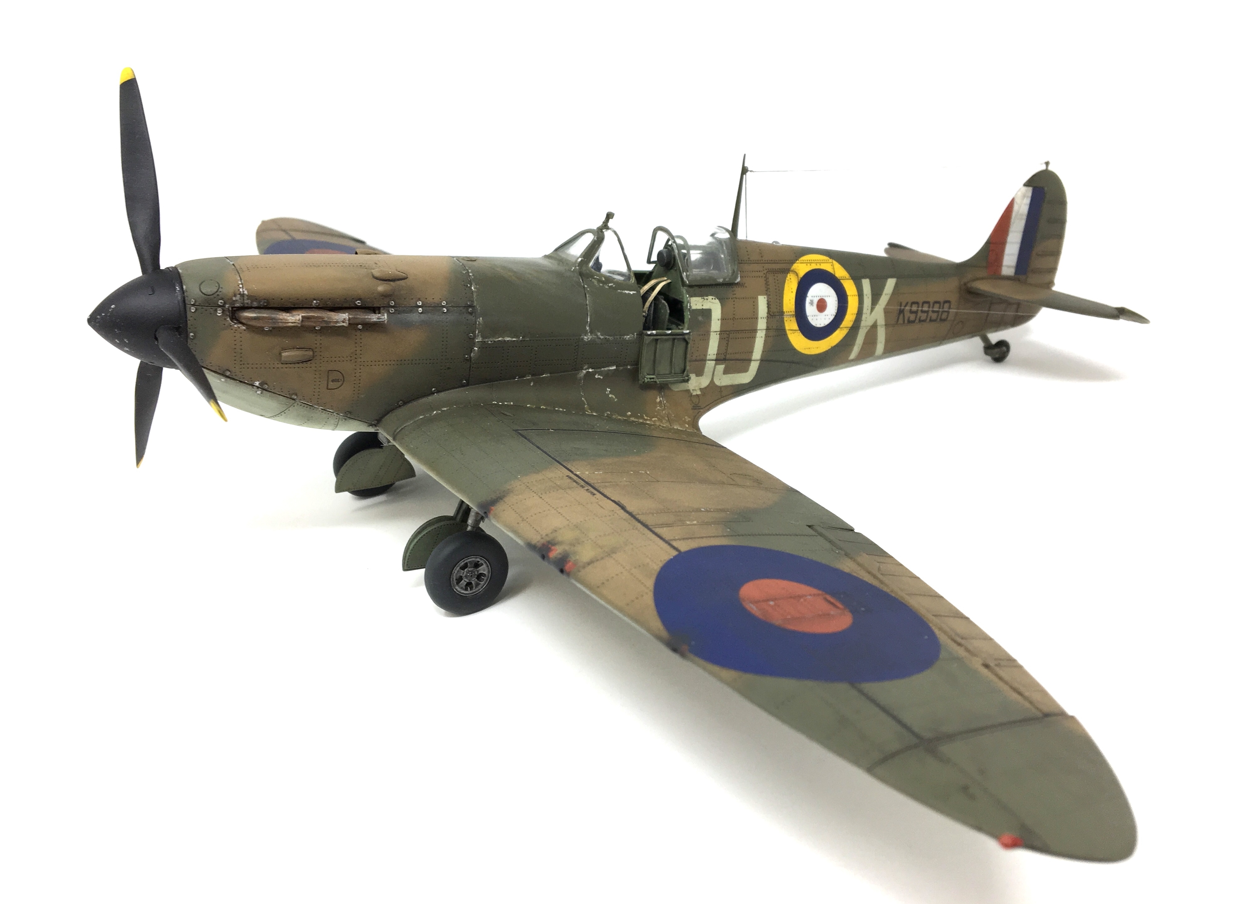 This is Revell’s 1/32 Spitfire Mk.IIA backdated to Mk.Ia configuration and enhanced with Barracuda Studio’s resin parts and Eduard Photo-etch detail parts. Painted with Tamiya and Grunze Acrylic’s and weathered with AK Interactive’s Aircraft weathering washes.