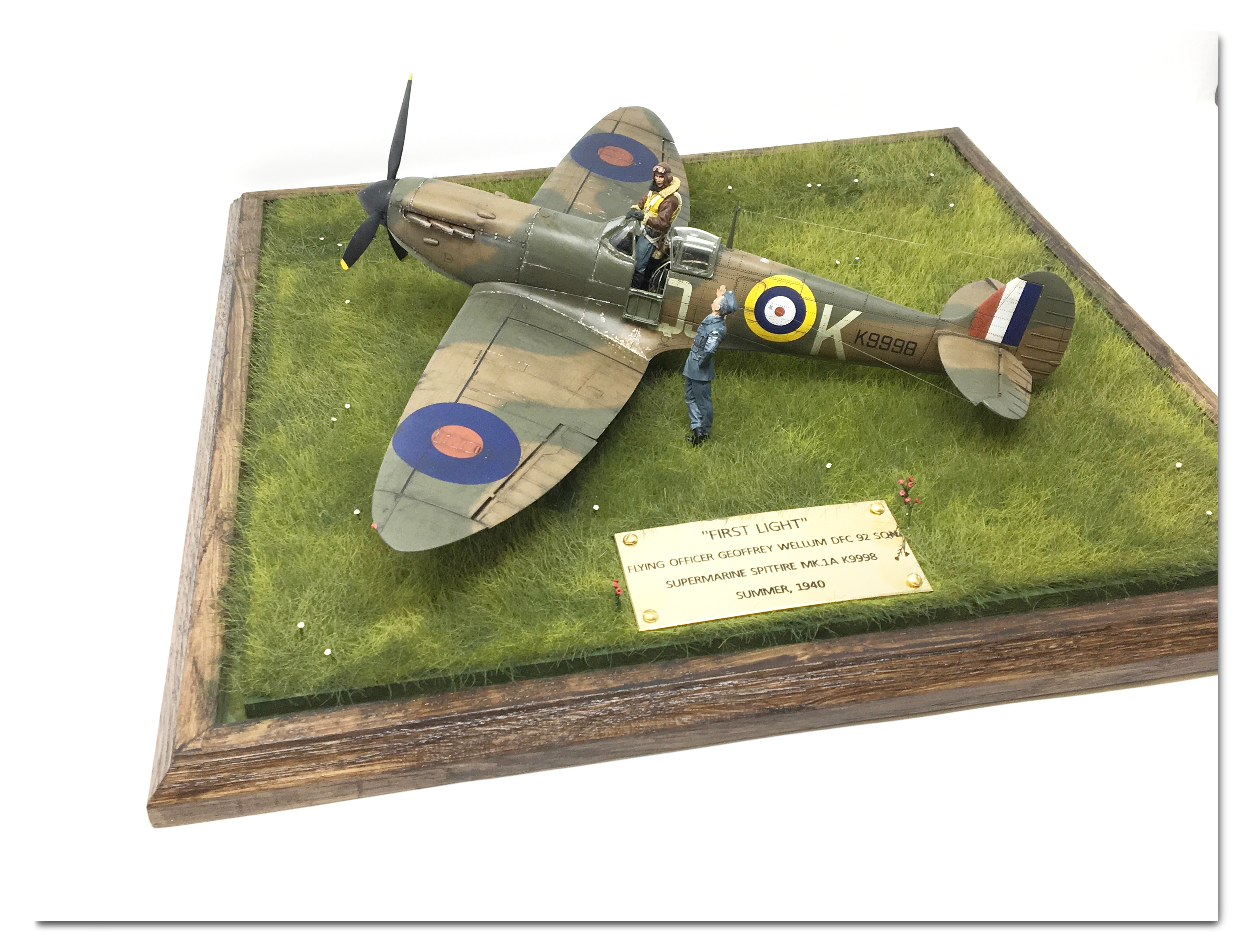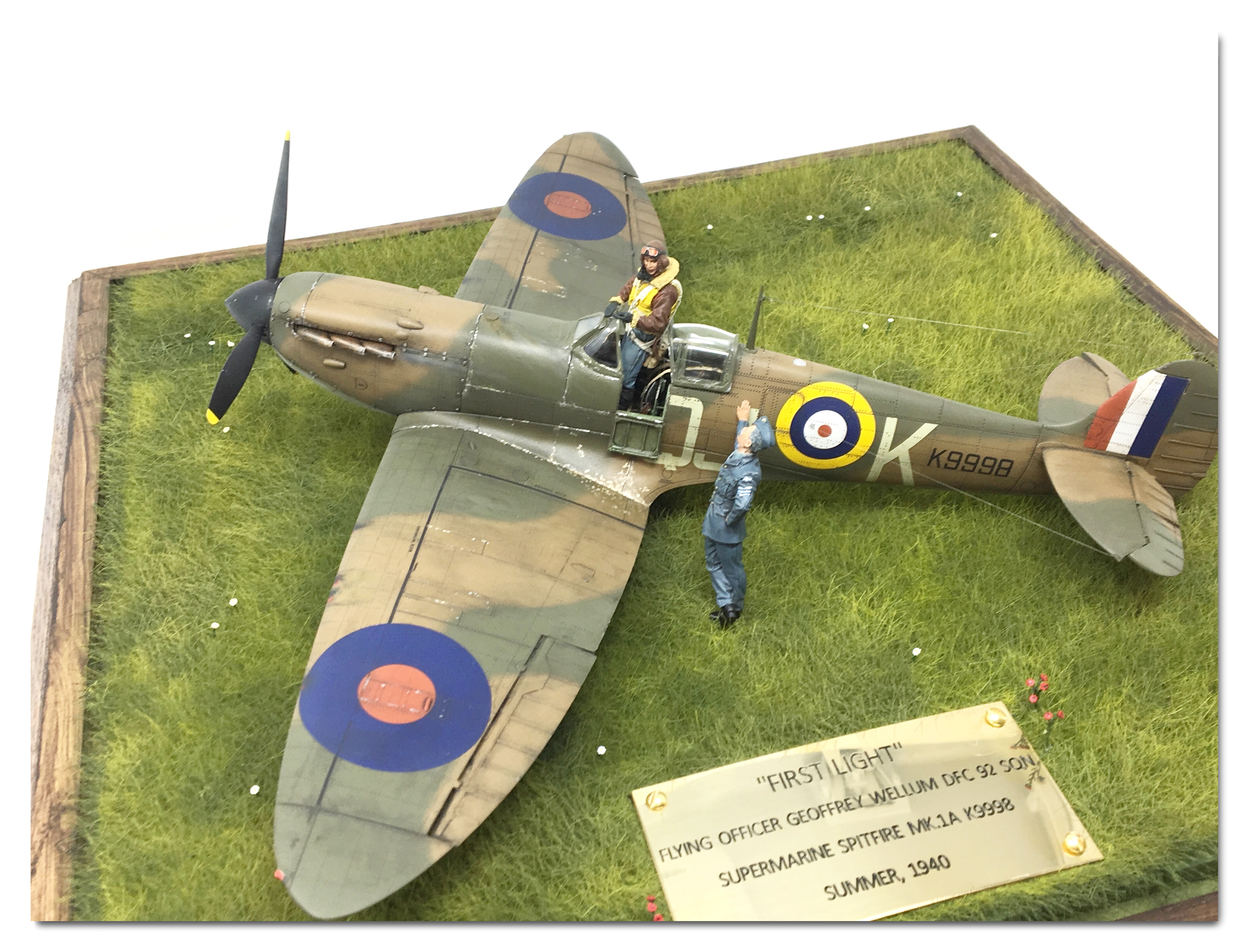 So here I present to you “First Light” a 1/32 scale depiction of Flying Officer Geoffrey Wellum DFC and his Supermarine Spitfire Mk.Ia, K9998 of 92 Squadron, Royal Air Force. Built and painted in tribute to Sqn.Ldr. Geoffey Wellum DFC who sadly left us this year.