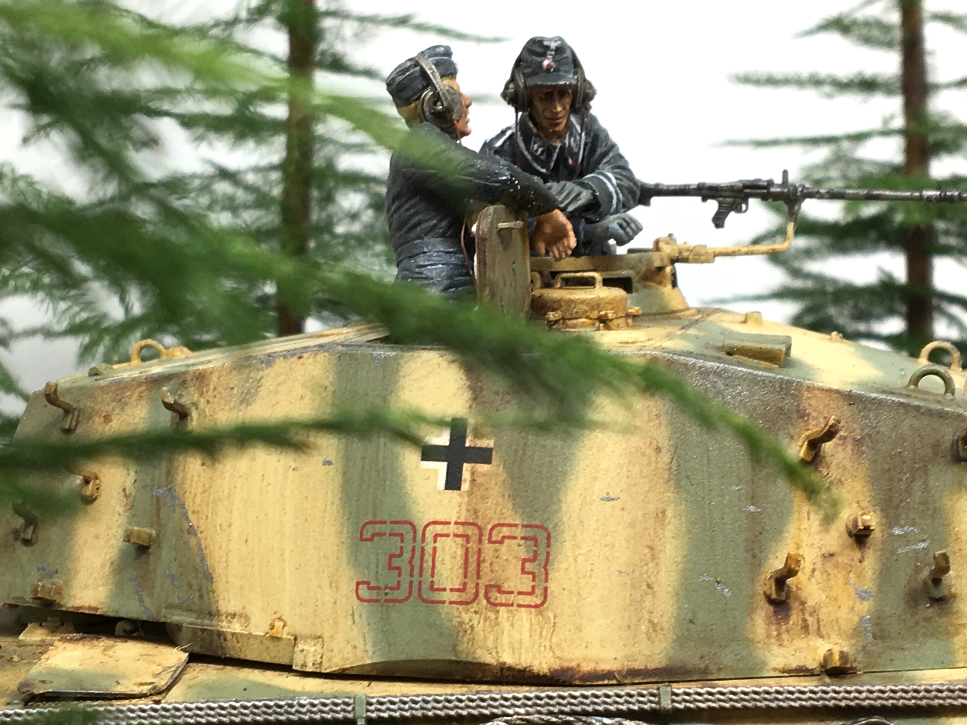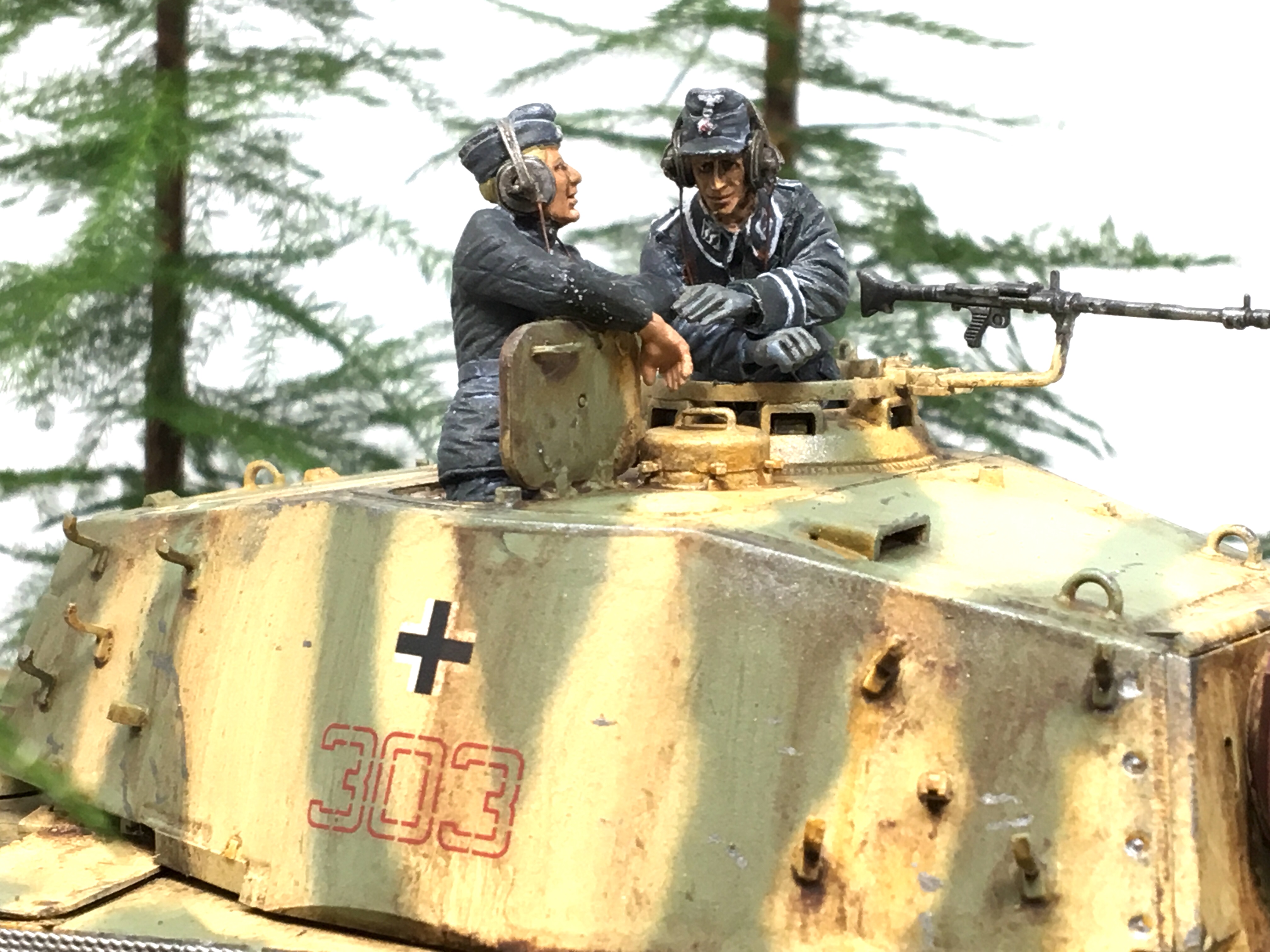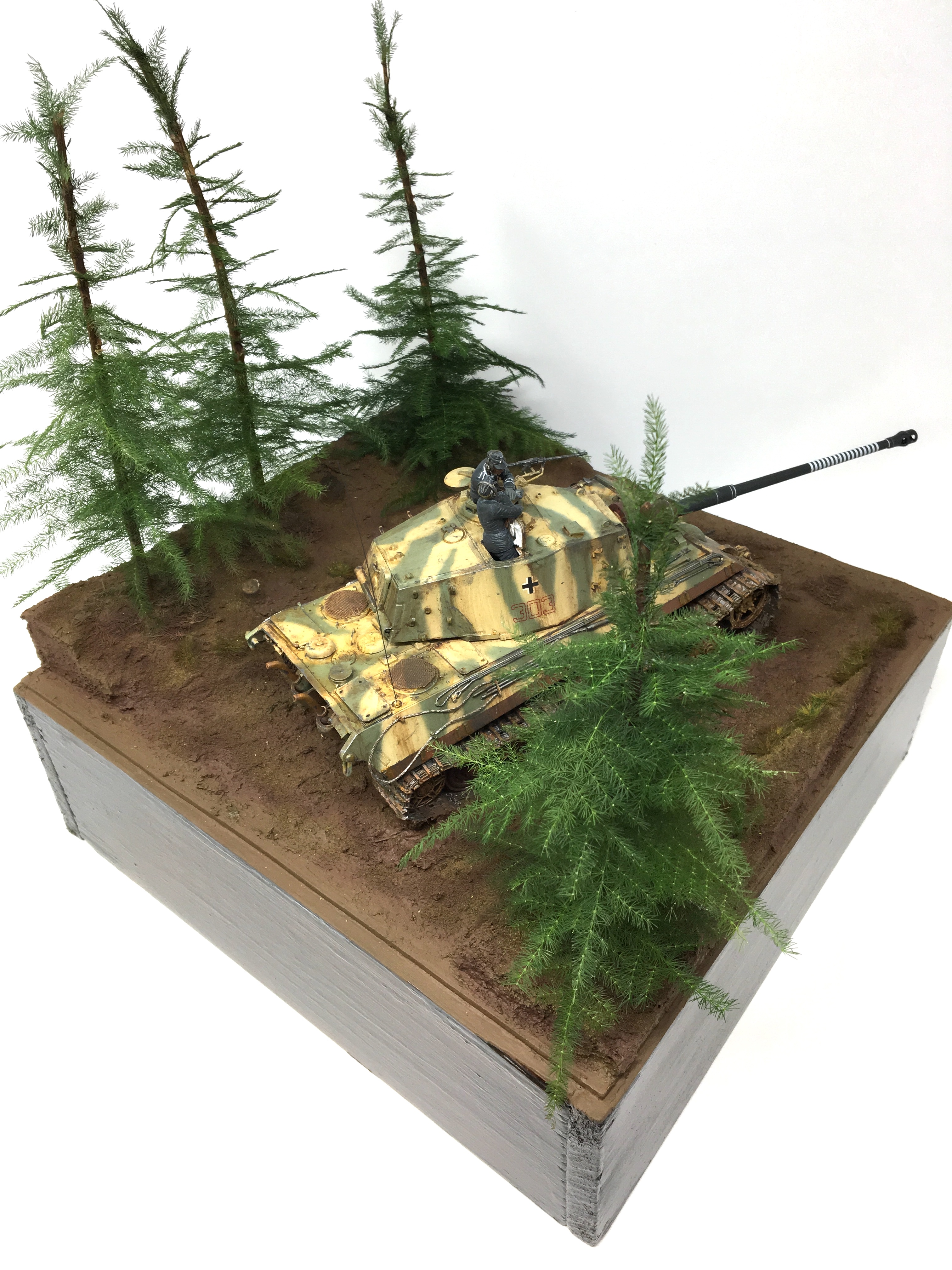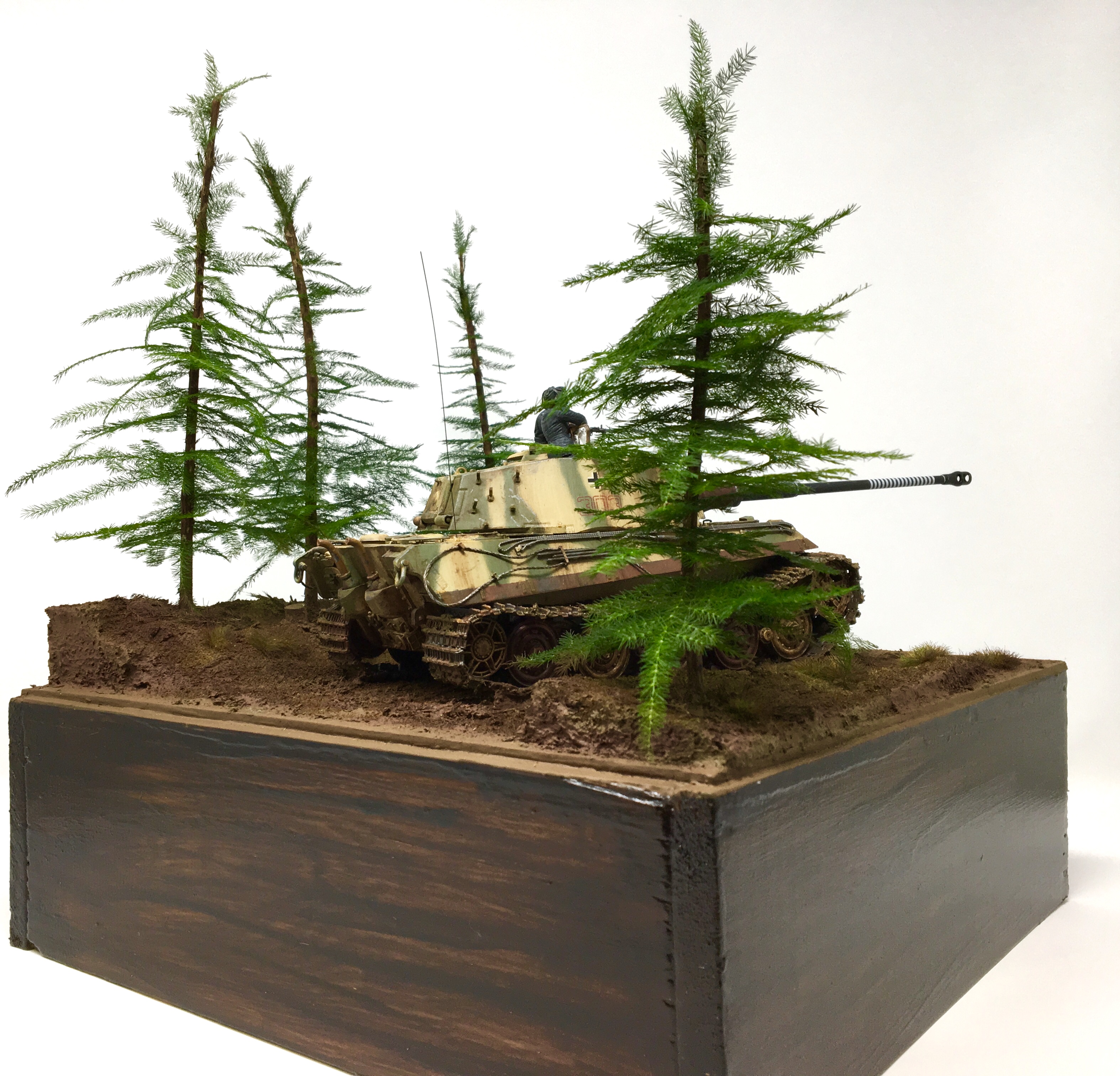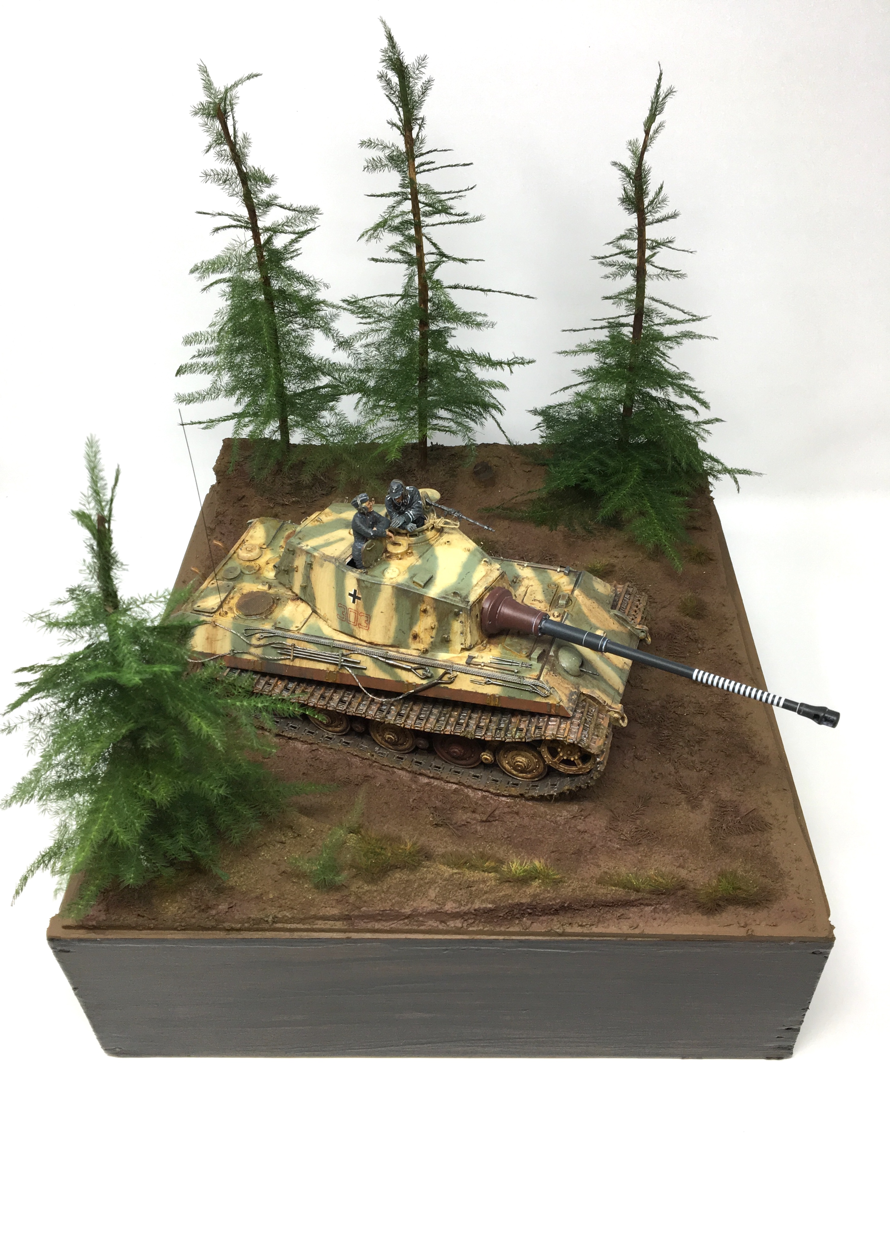 I scratch built a base with home made groundwork and pine trees and found a couple of 1/35 resin German tank crew in my spares box. Now I had a vision and I was going to bring to reality. This was great! I was enjoying the creativity of painting and weathering and setting a scene that was from my imagination.