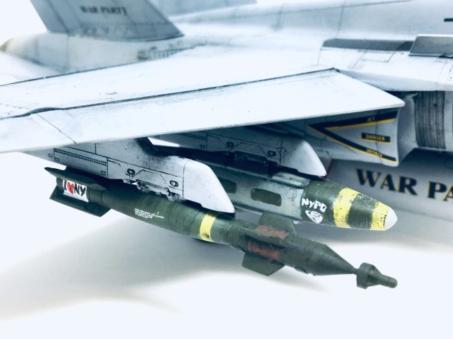 The markings that inspired this build came courtesy of Two Bobs Aviation Graphics. This build will be posed on a 1/48 Carrier deck to be completed in the near future. Here she is then, call sign “Party 400” all bombed up and ready to go!