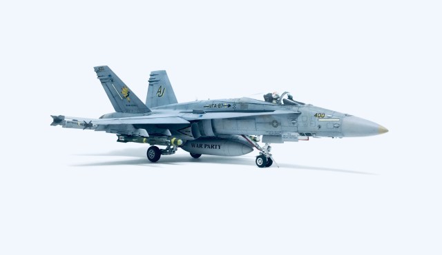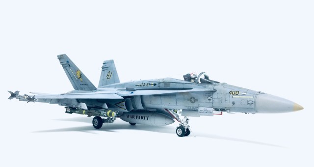 This is my 1/48 Hasegawa F/A-18C Hornet in the markings of VFA-87 “War Party”. The kit was for the most part built straight from the box, the only modifications being the pilot figure and his bang seat.