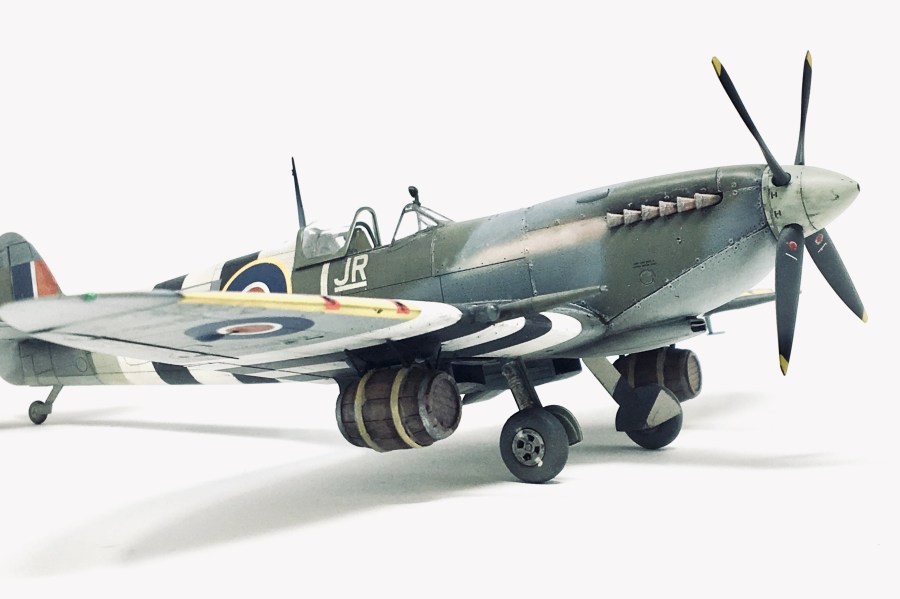 Among the projects I have on the bench, I was able to finish the display for my recently completed Spitfire Mk.IX marking the 75th anniversary of D-Day. This excellent 1/48 Eduard Spitfire Mk.IX had some aftermarket added to it to depict a famous D-Day Spitfire. You can read the build article here: Spitfire Mk.IX