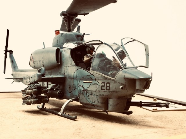 At long last I can finally call this build finished! With a custom display case made by good friend Paul Thompson and a Squadron Badge courtesy of Capt. Allyn Hinton, USMC I am happy to present my AH-1W Cobra-“CALLSIGN : WARRIOR”