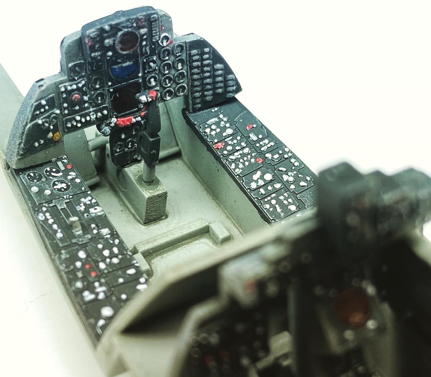 I started with the cockpit and went strigt back to old fashioned modelling skills. The cockpit you see in these photo’s was painted entirely by hand.