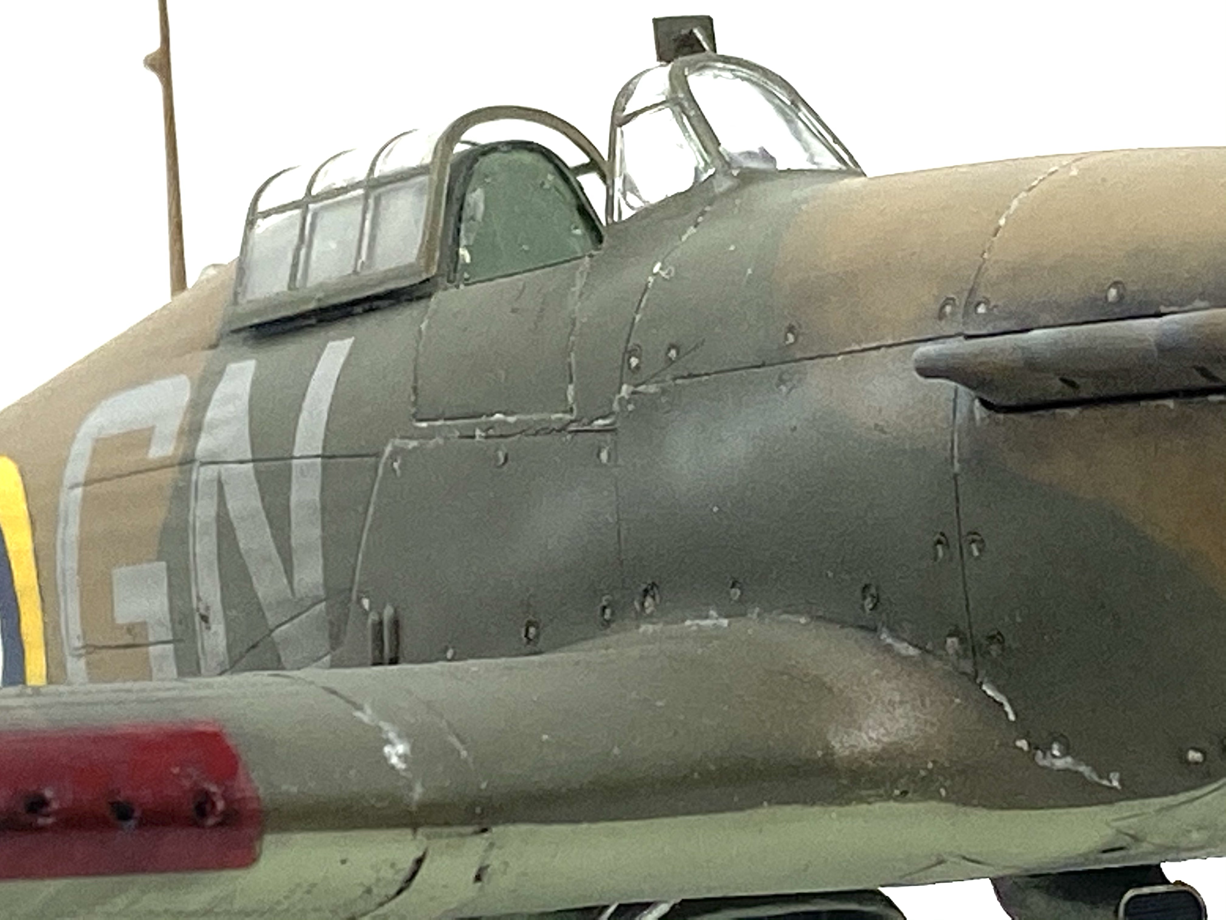 This is where Fly’s kit really shines, it’s superb surface detailing just cries out for a good weathering job. Add to that the fact this was a 249 Sqn machine at the height of the Battle of Britain meant that I could really get stuck in! Battle of Britain Hurricane’s were flown day in, day out and soon racked up hundreds of operational flying hours. They got dirty, scratched and faded so that is the look I wanted for this model.