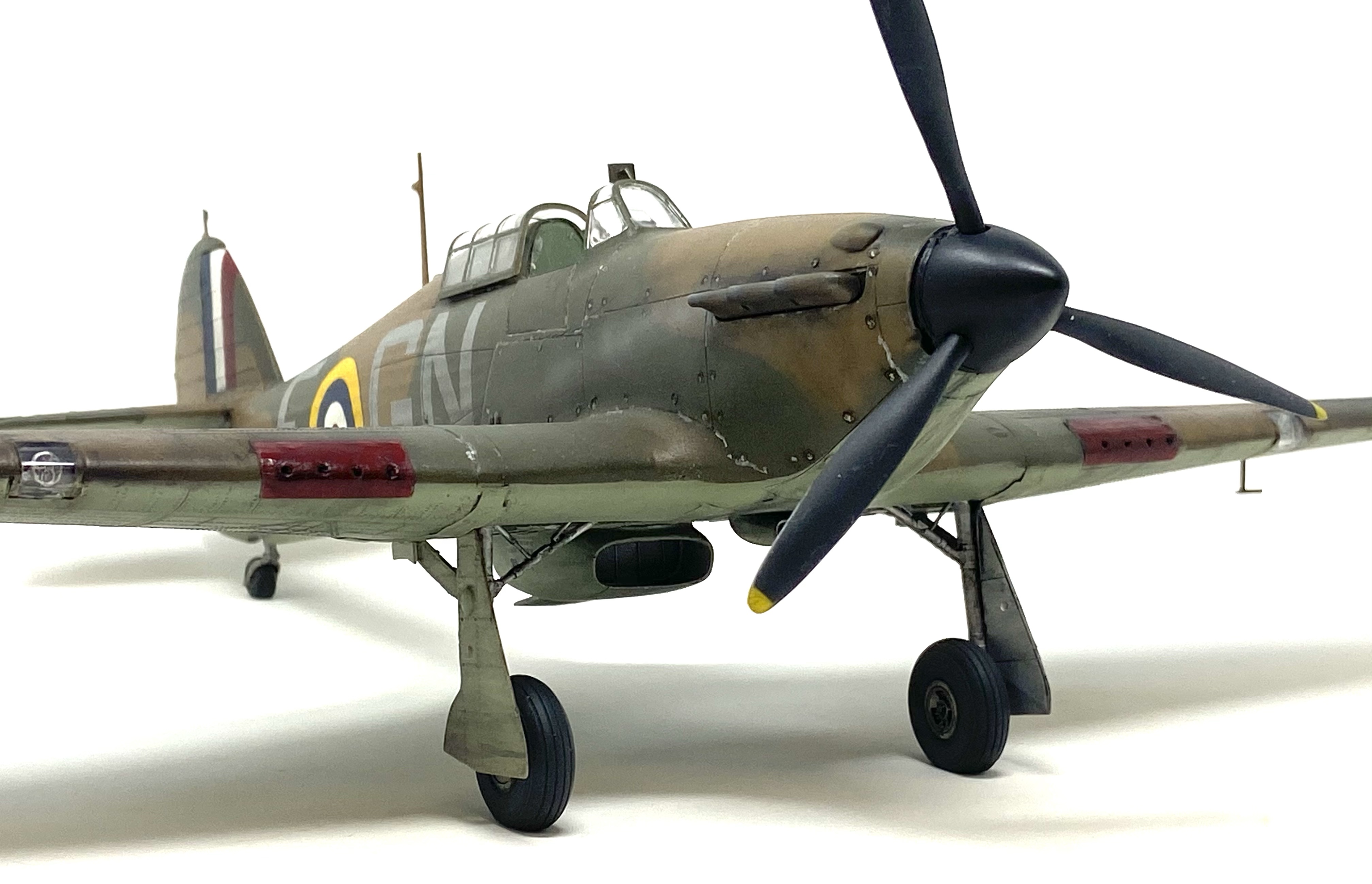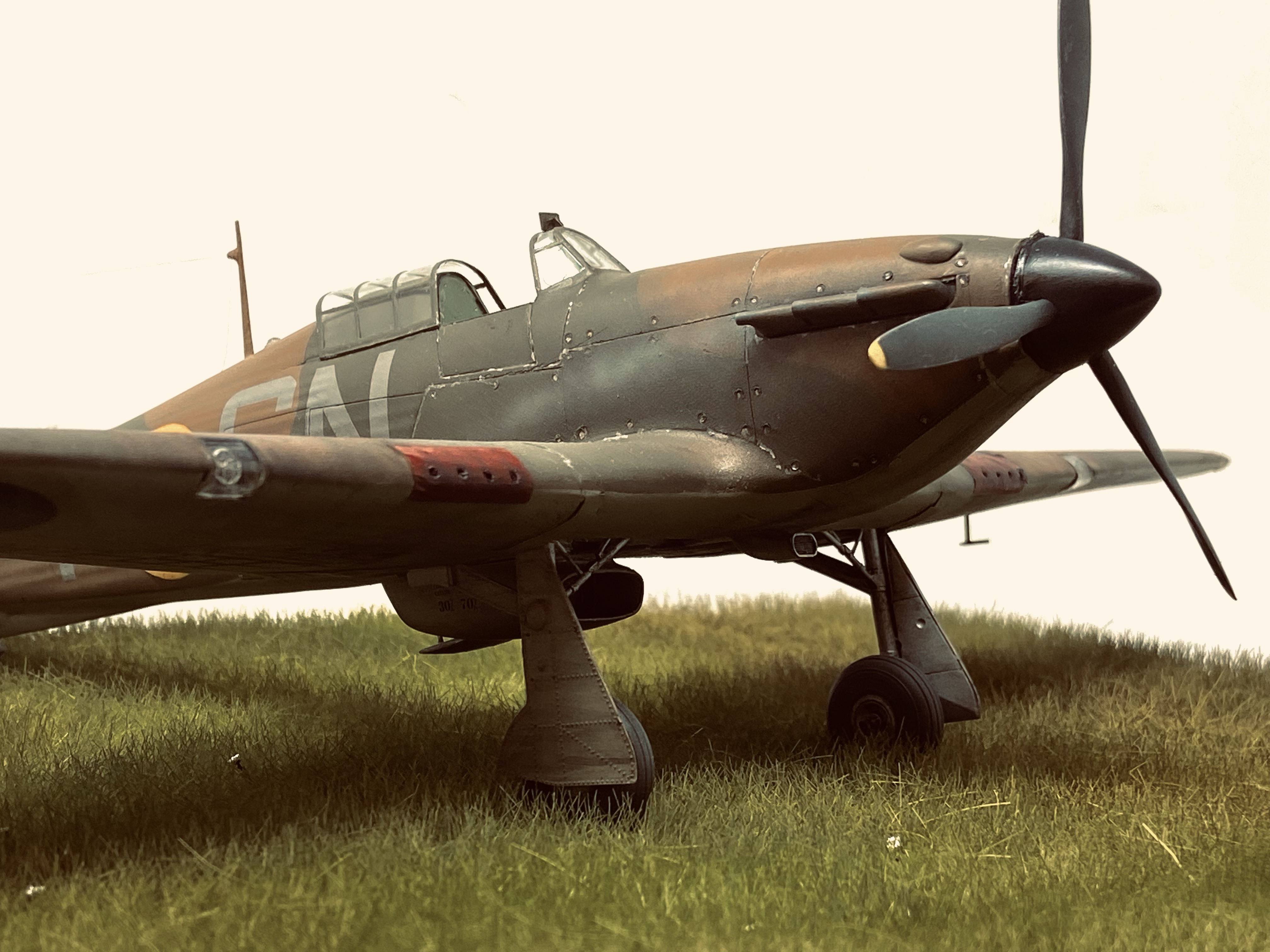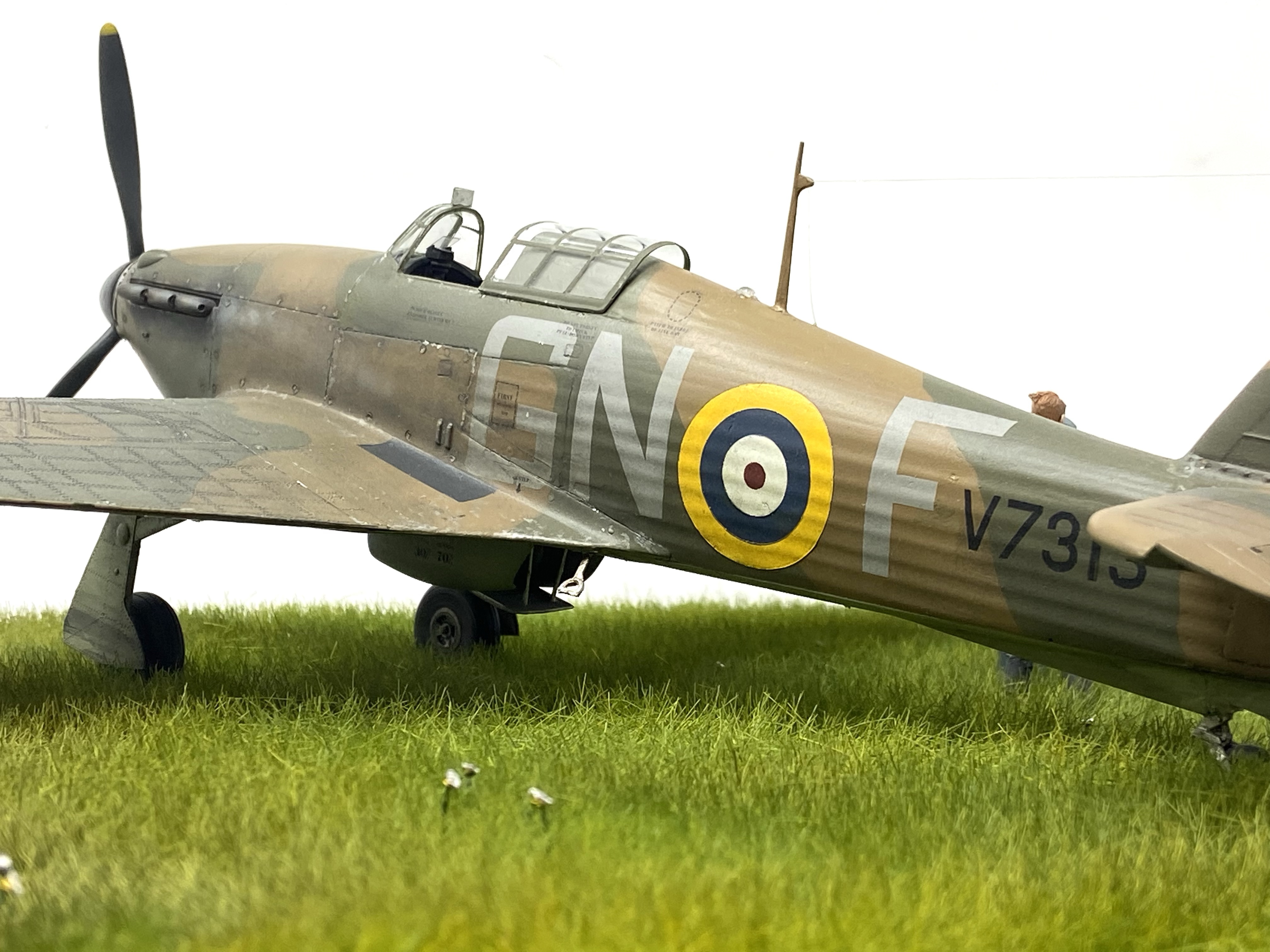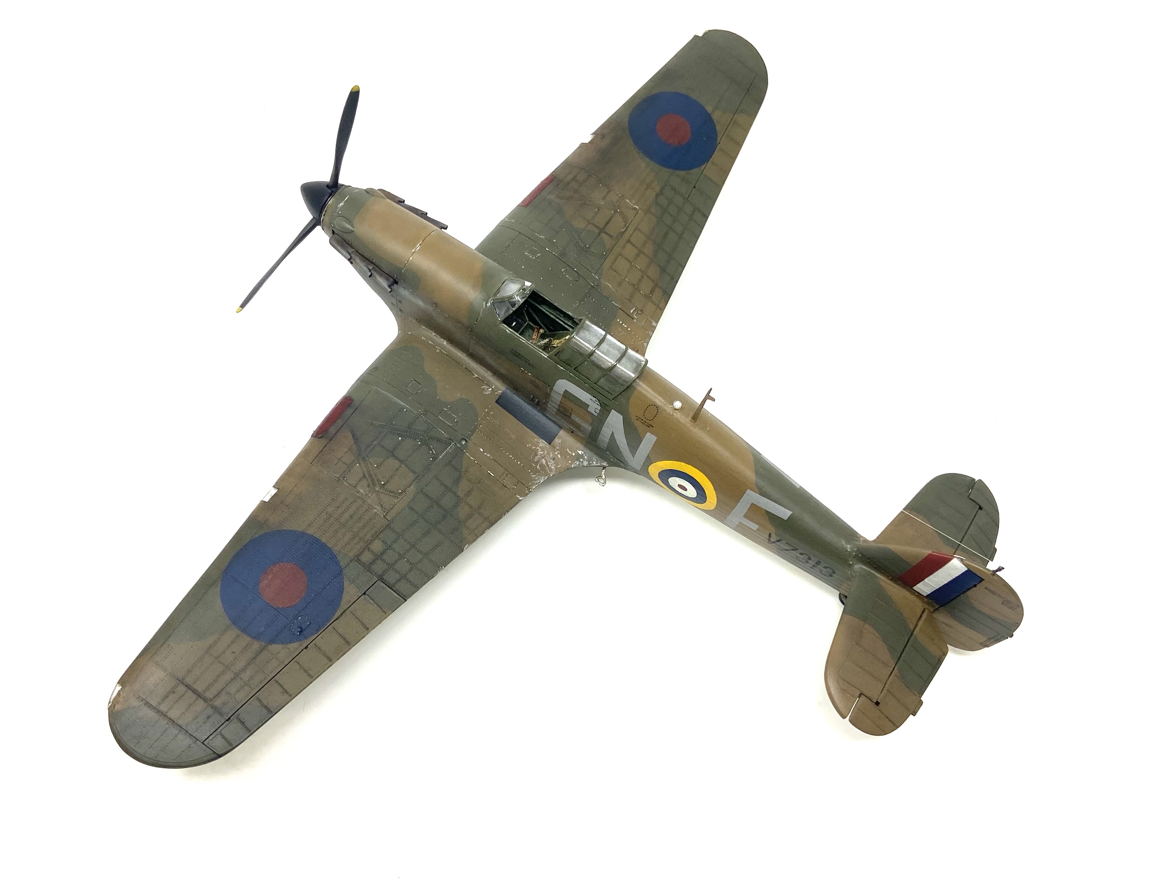 The early war Hurricane Mk. I’s had a tight camouflage pattern and some were more beaten up than others do I needed to do some research- Wing Leaders book on Battle of Britain Hurricanes is superb reference for modellers.