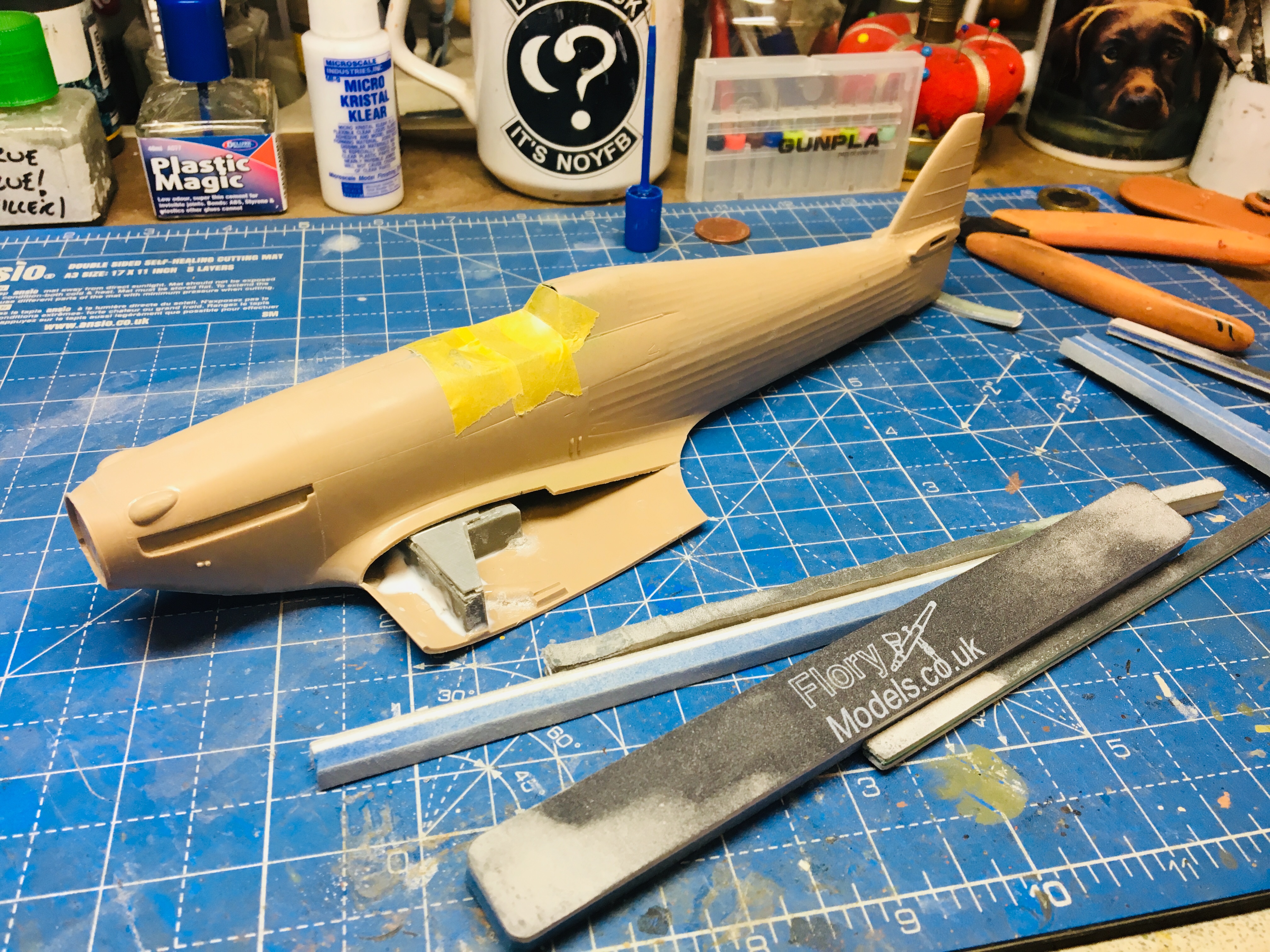 Eventually I was able to knock the airframe into shape and re-scribe the details lost during sanding. I was very relieved to get the model this far as I was able to move onto the paint phase.