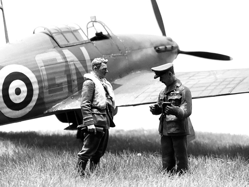 Now I had to paint and finish the figures and pose them to set the scene as seen in Cecil Barton’s photograph. Although the photos were taken on a hard surface Jonny asked me to set the aircraft on a grassy field as I did with my previous work “First Light”