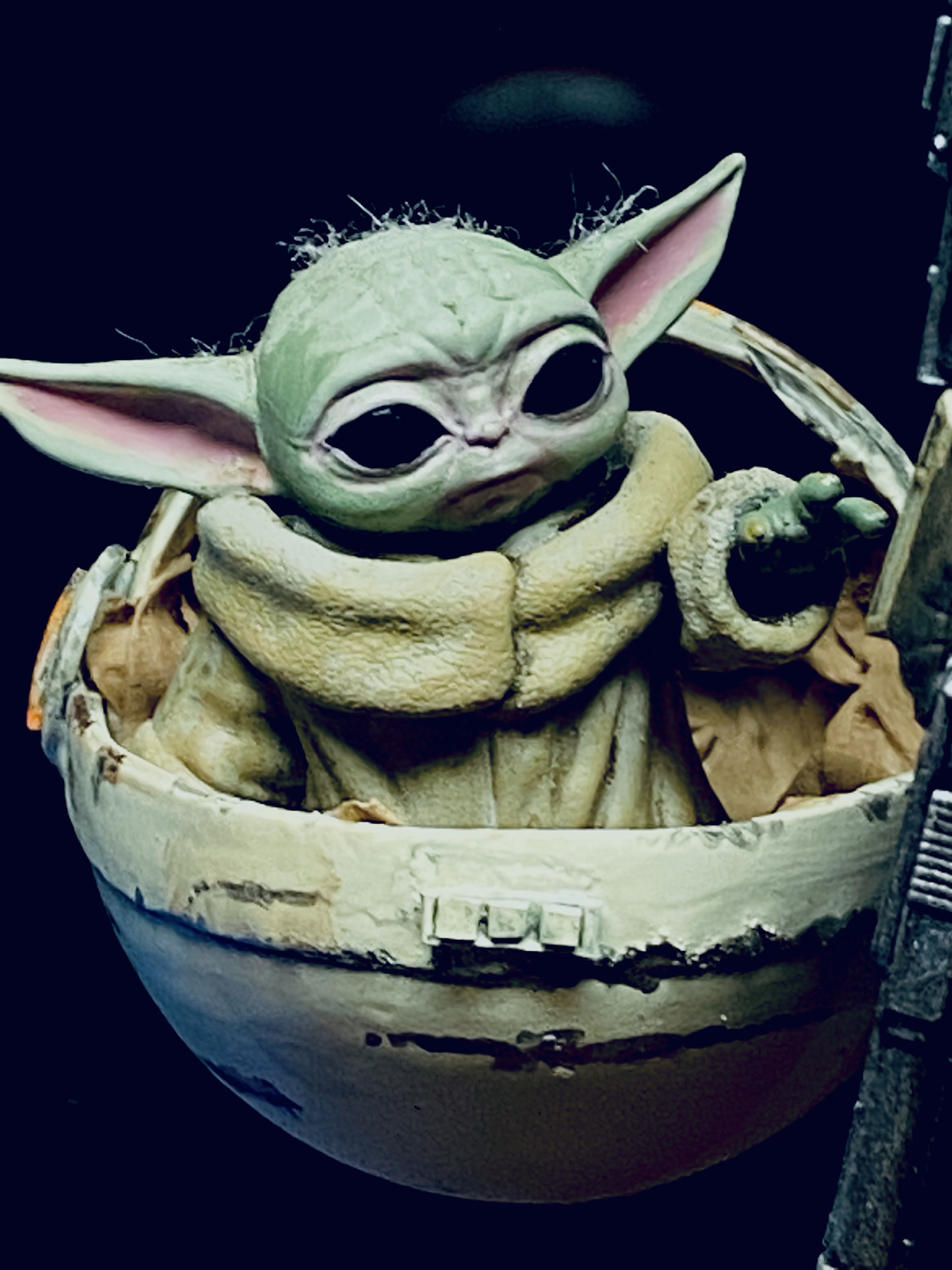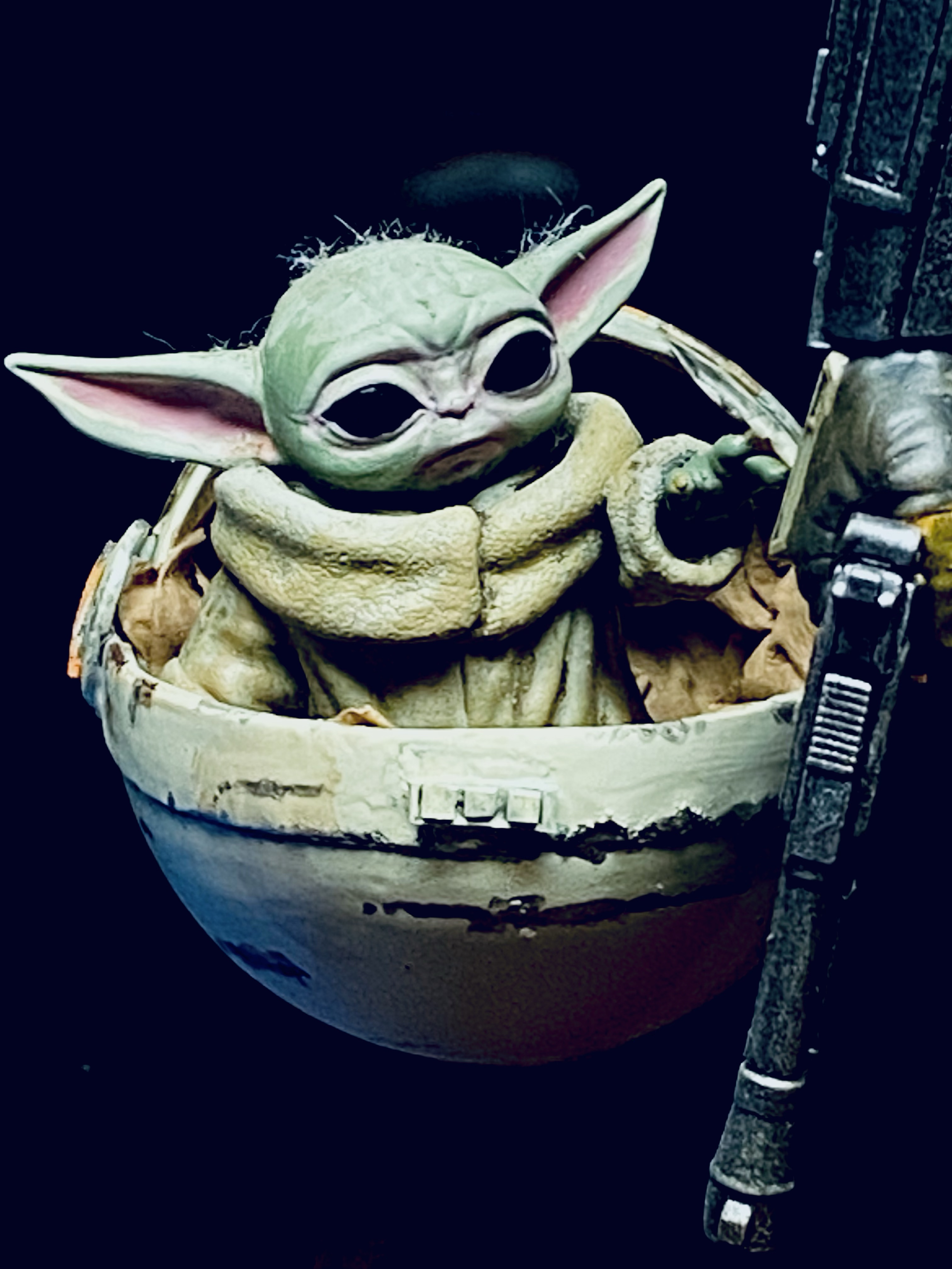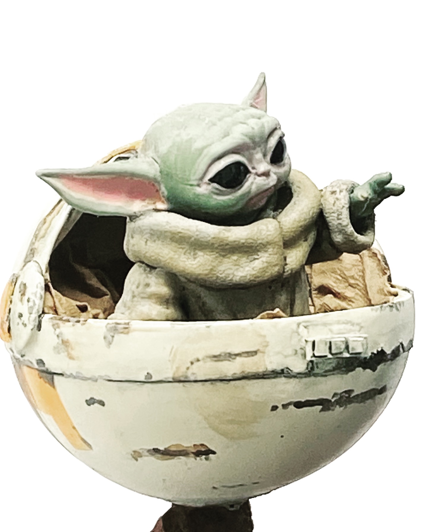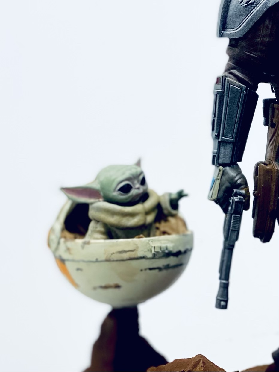 The build itself was very easy, the work was in the painting. I was lucky enough to receive a Grogu figure in the box as well so I thought the best way to incorporate him into being at Mando’s side was to fabricate the floating pram he gets around in.