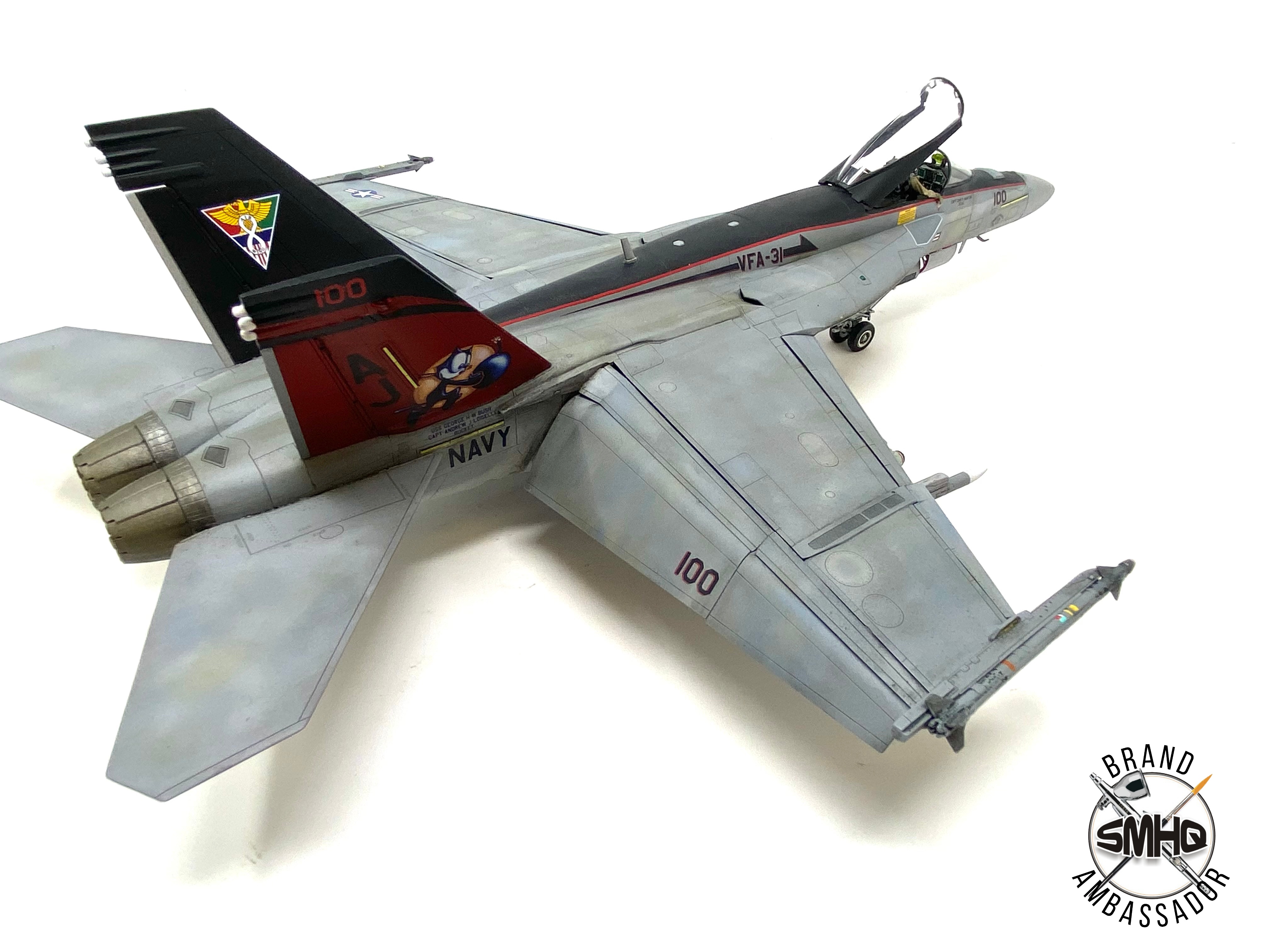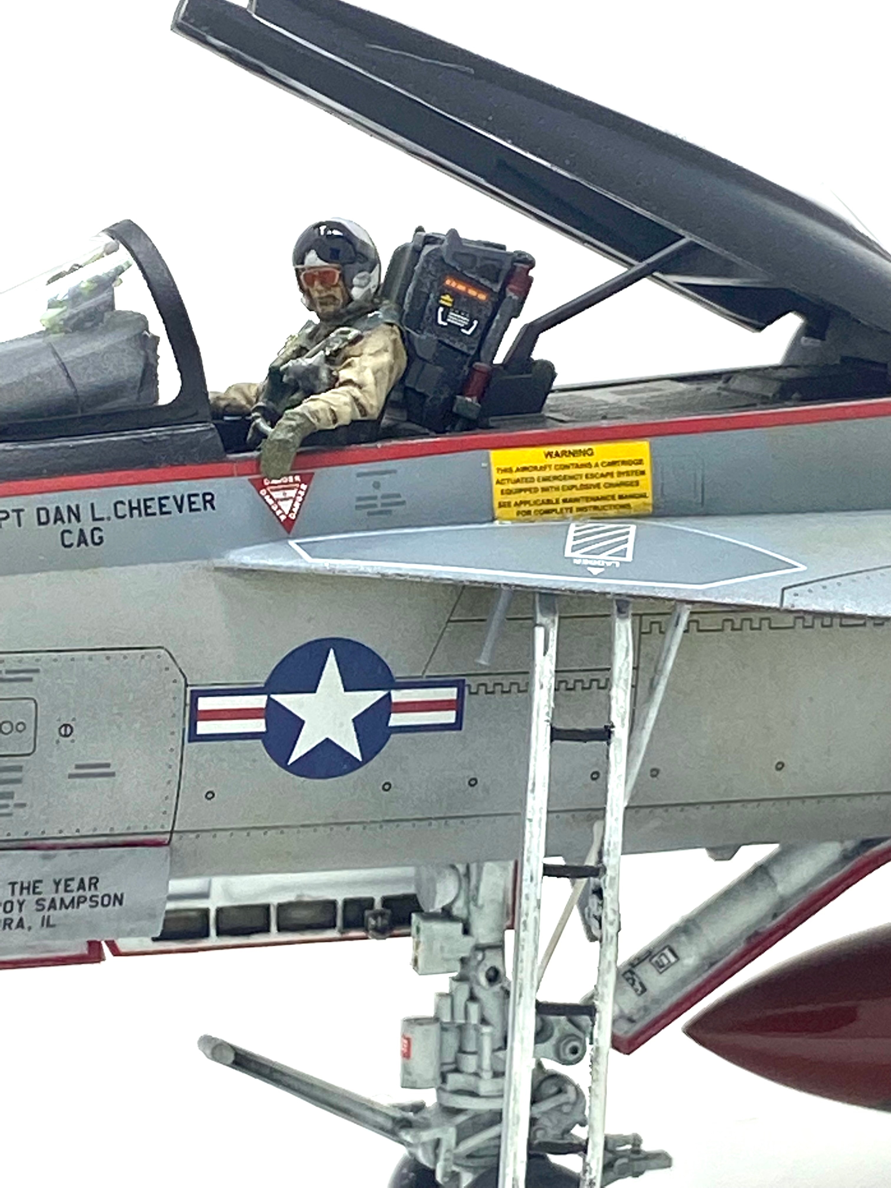 The real challenge here was to capture the look of a US Navy CAG jet on deployment. So it is going to be weathered, it is going to have paint corrosion but it is also the CAG’s jet so it will also be well cared for.