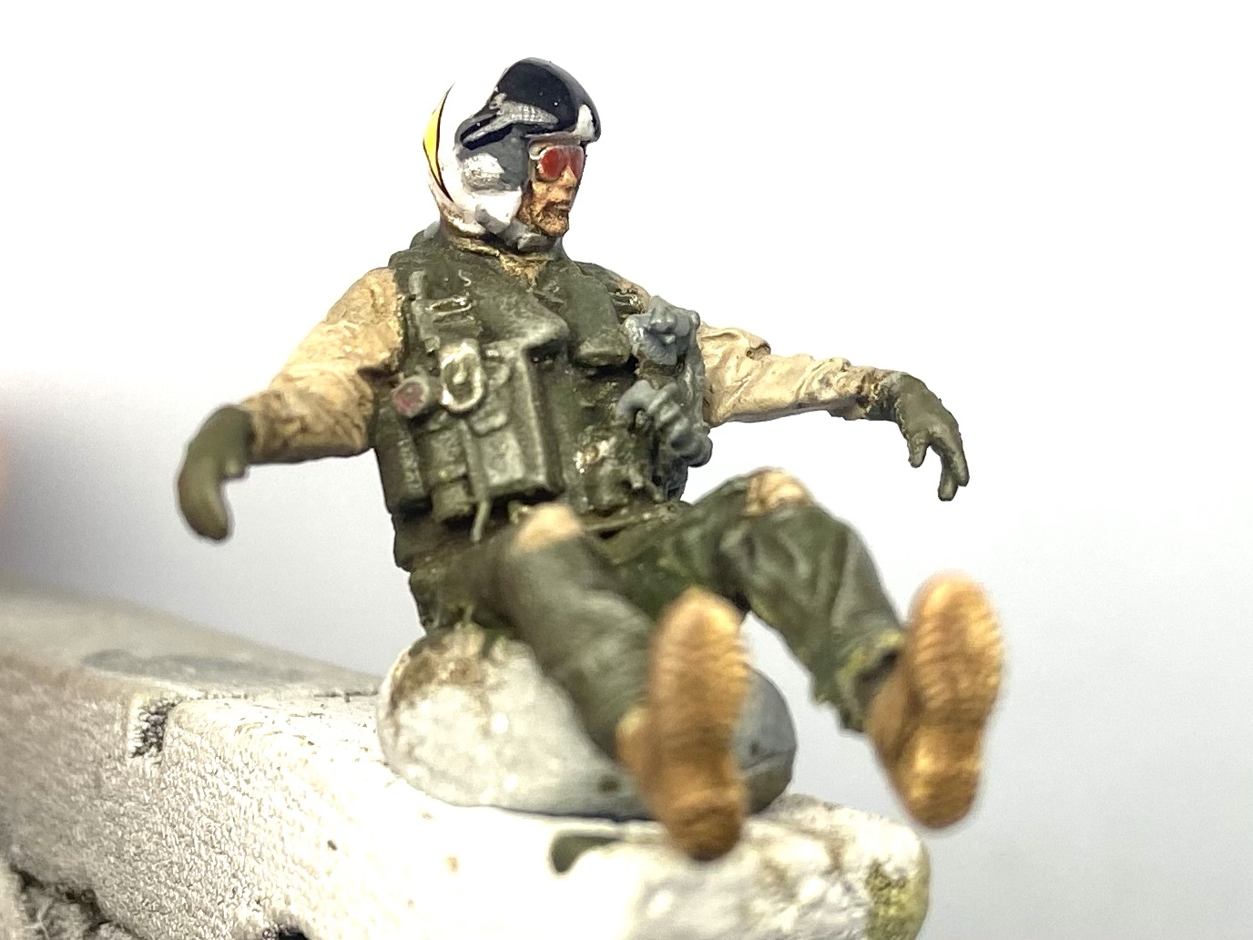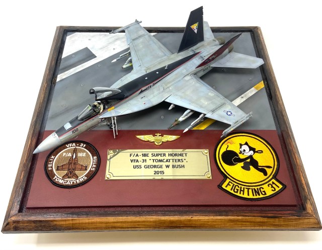 The rest of the build was made up of finishing the weapons loadout, canopy and pilot figure. I also bought a custom display case and painted it to resemble a carrier deck.