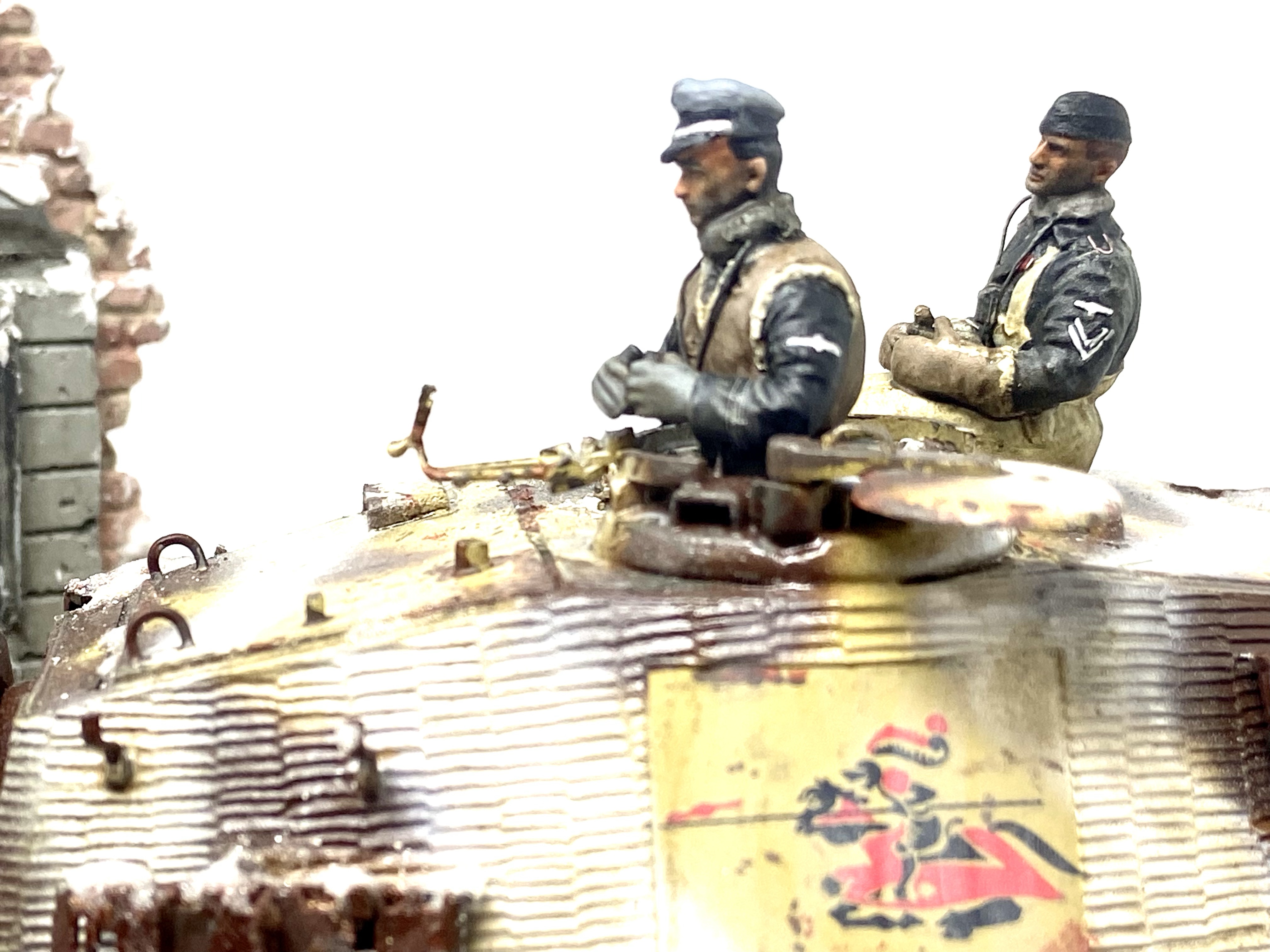 I also set about adding stowage to the Kingtiger and began its weathering process. For this I used a combination of enamel washes, pigments and snow effects. I must say I was rather pleased with the look I achieved. Once the tank was finished I added a couple of Mini-Art figures to add interest to the scene.