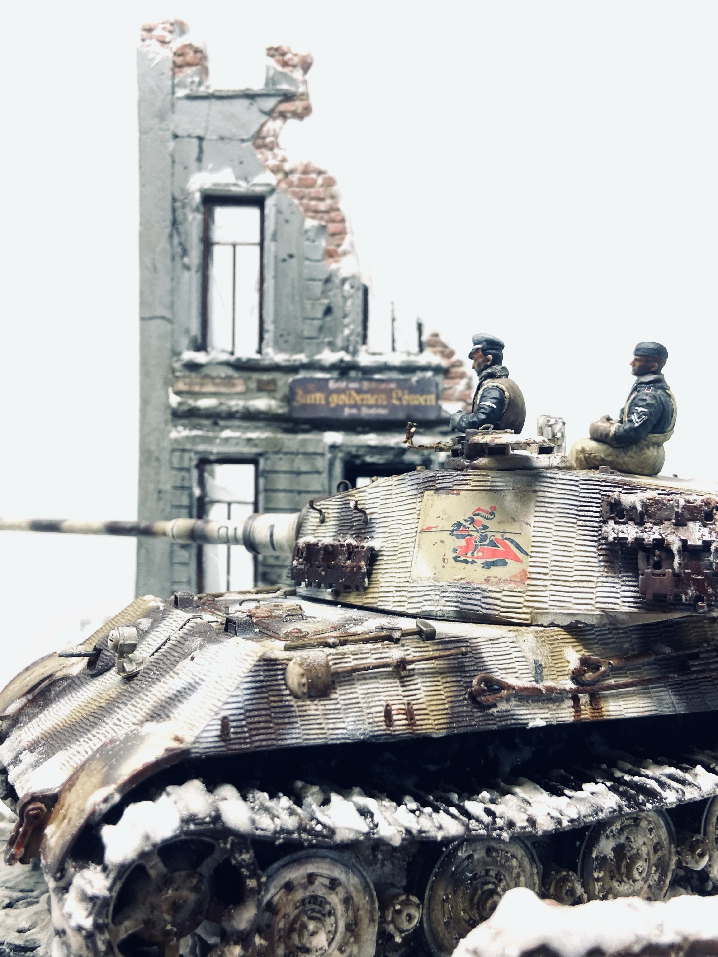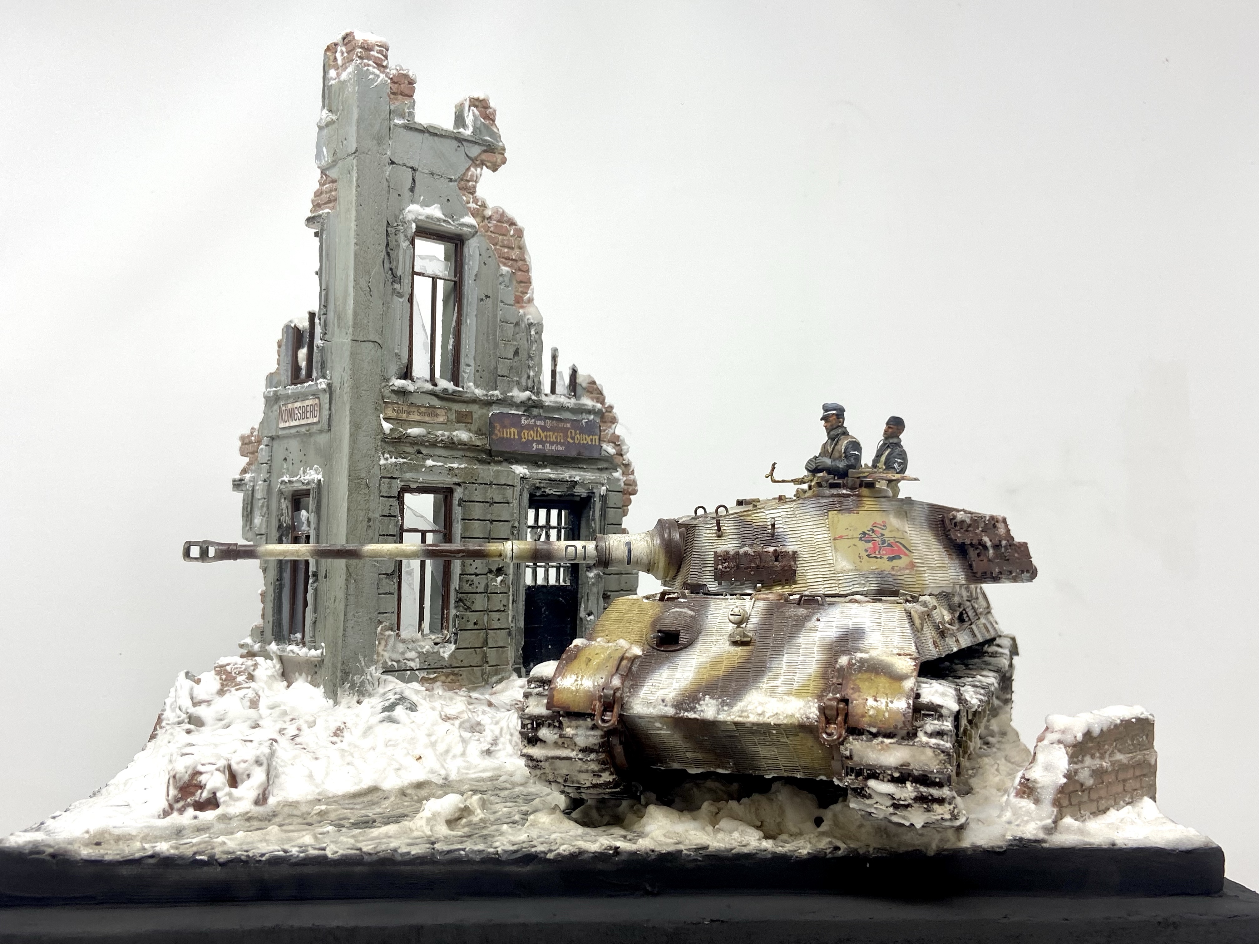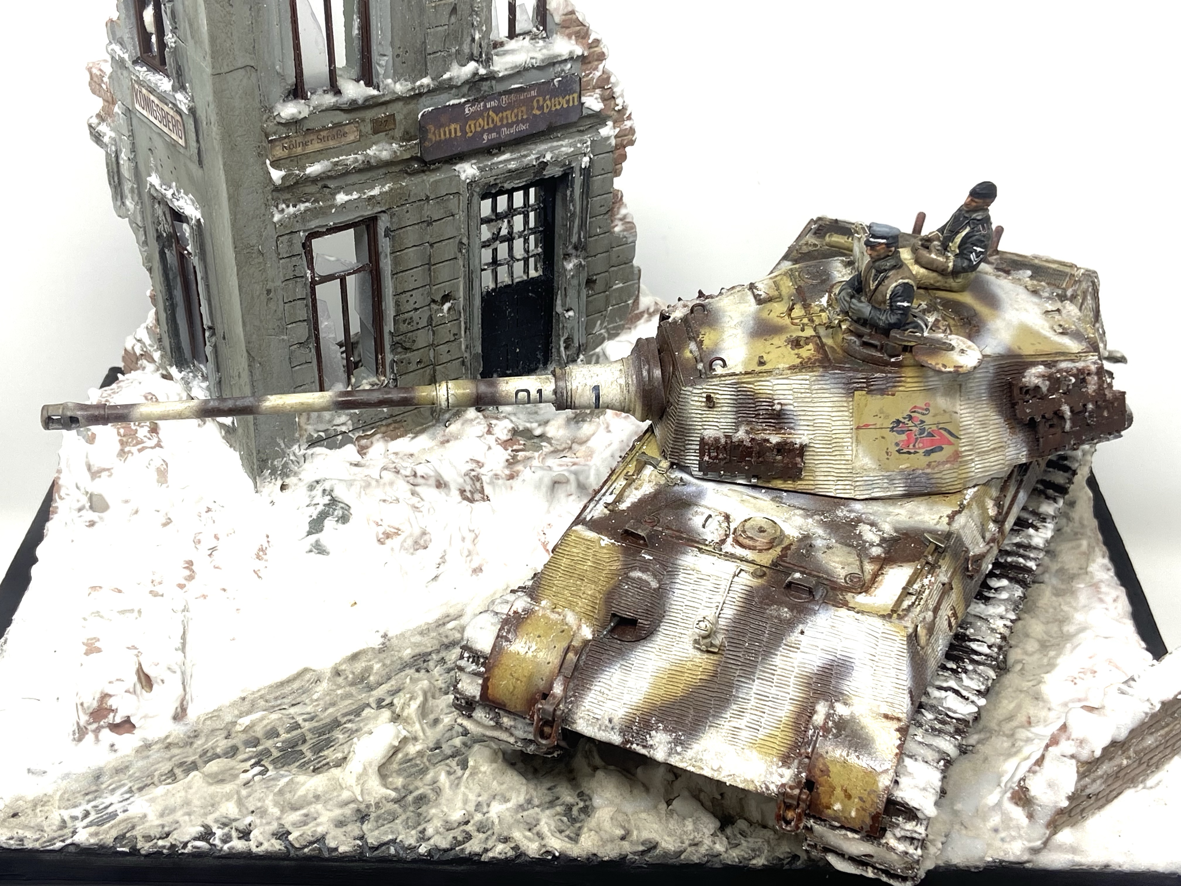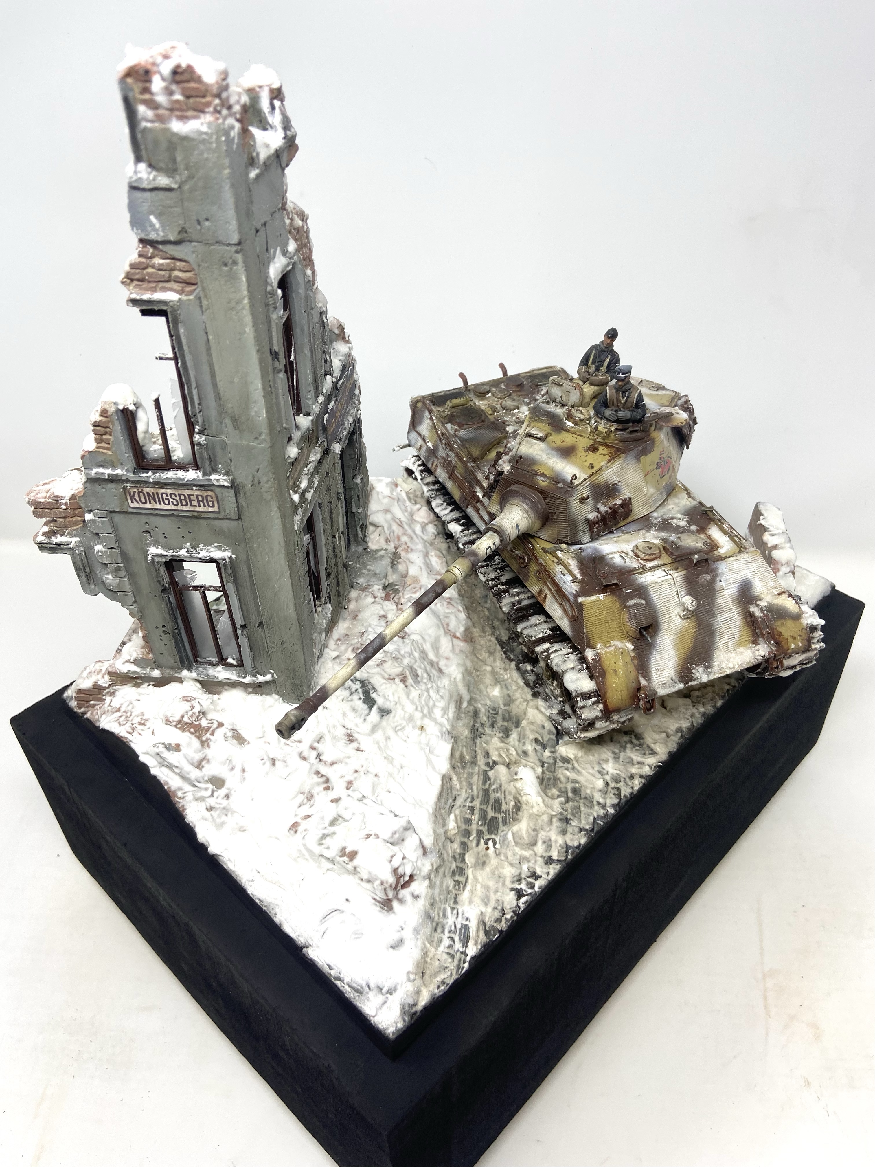 I knew I was going to set this Kingtiger in a winter scene and I also knew it would need to resemble late war Konigsberg.