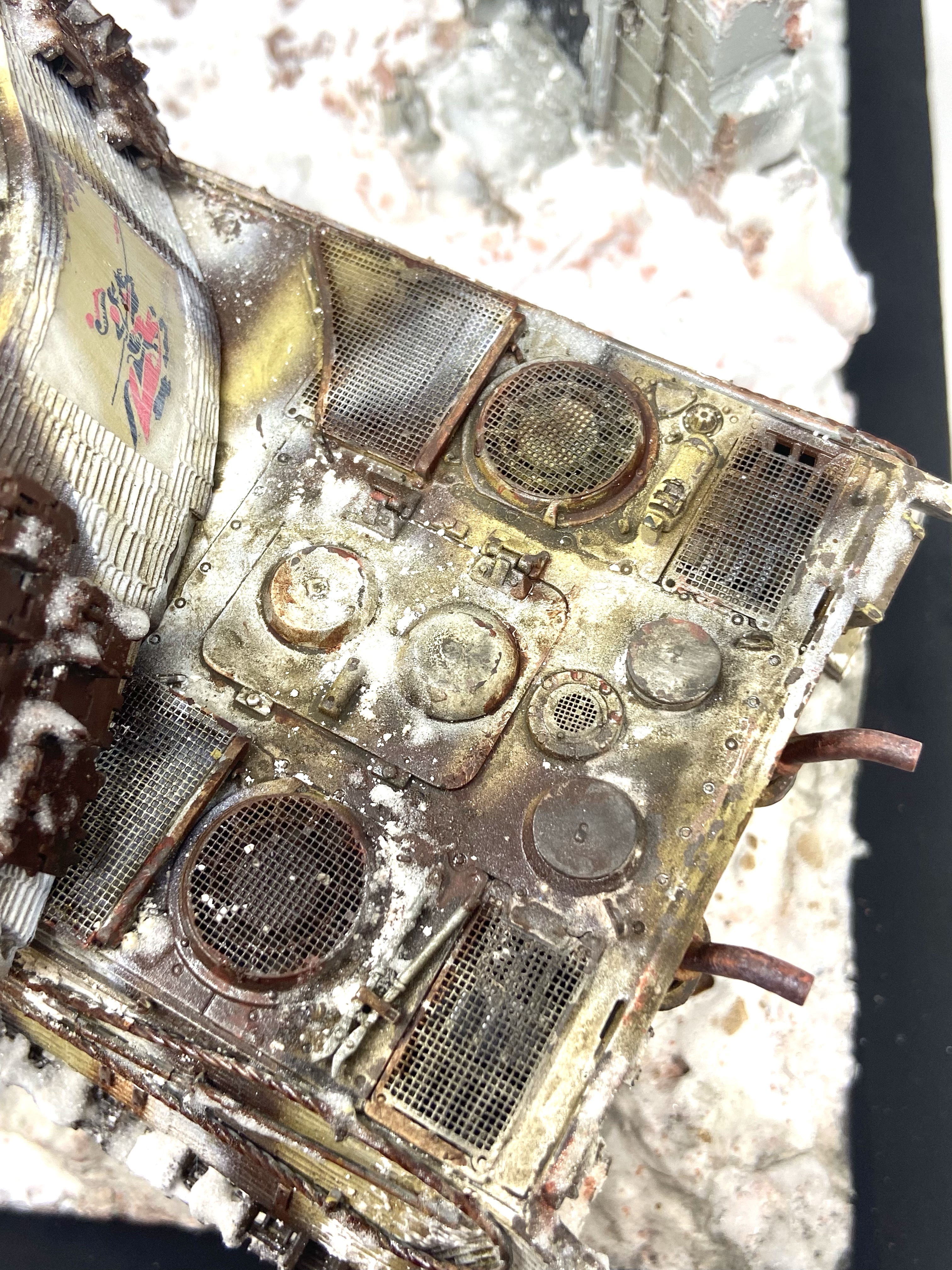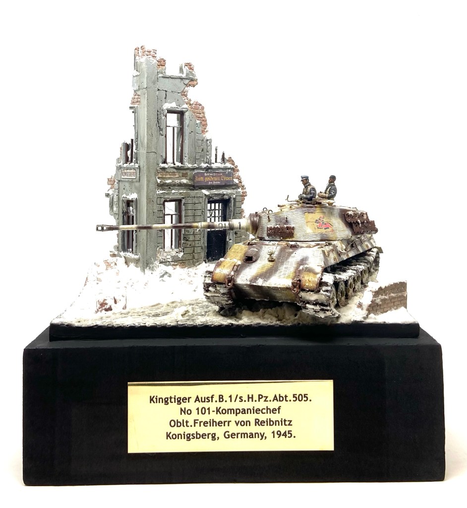This Kingtiger was a Ausf.B.1/s.H.Pz Abt 505 and that unit was in Konigsberg in the winter of 1944. Photographs from this period show the cityscape to be in ruins and the weather in the grip of a harsh winter. My mate Russ from my model club grinned at me and said “You’re gonna need lots of snow!”
