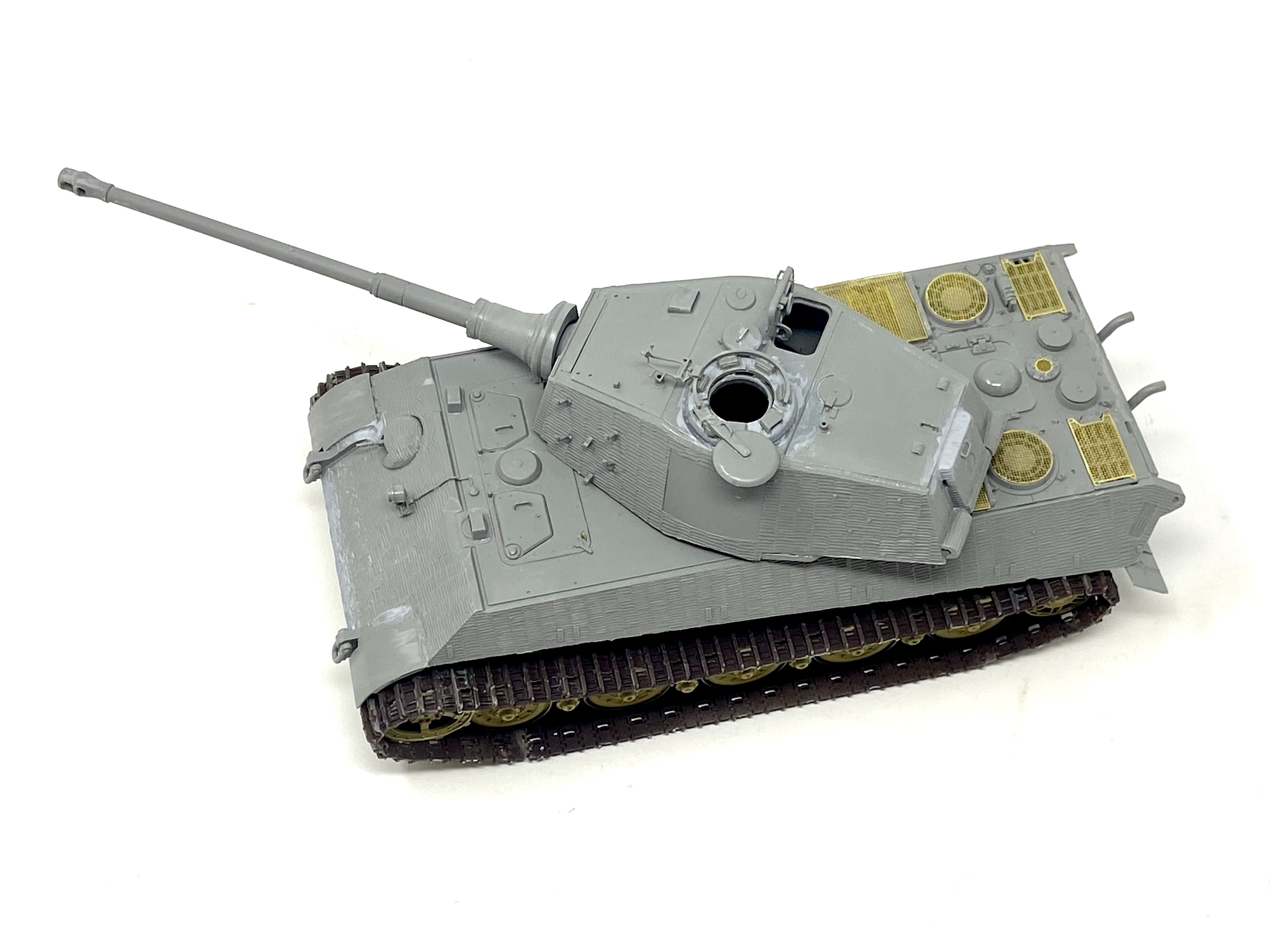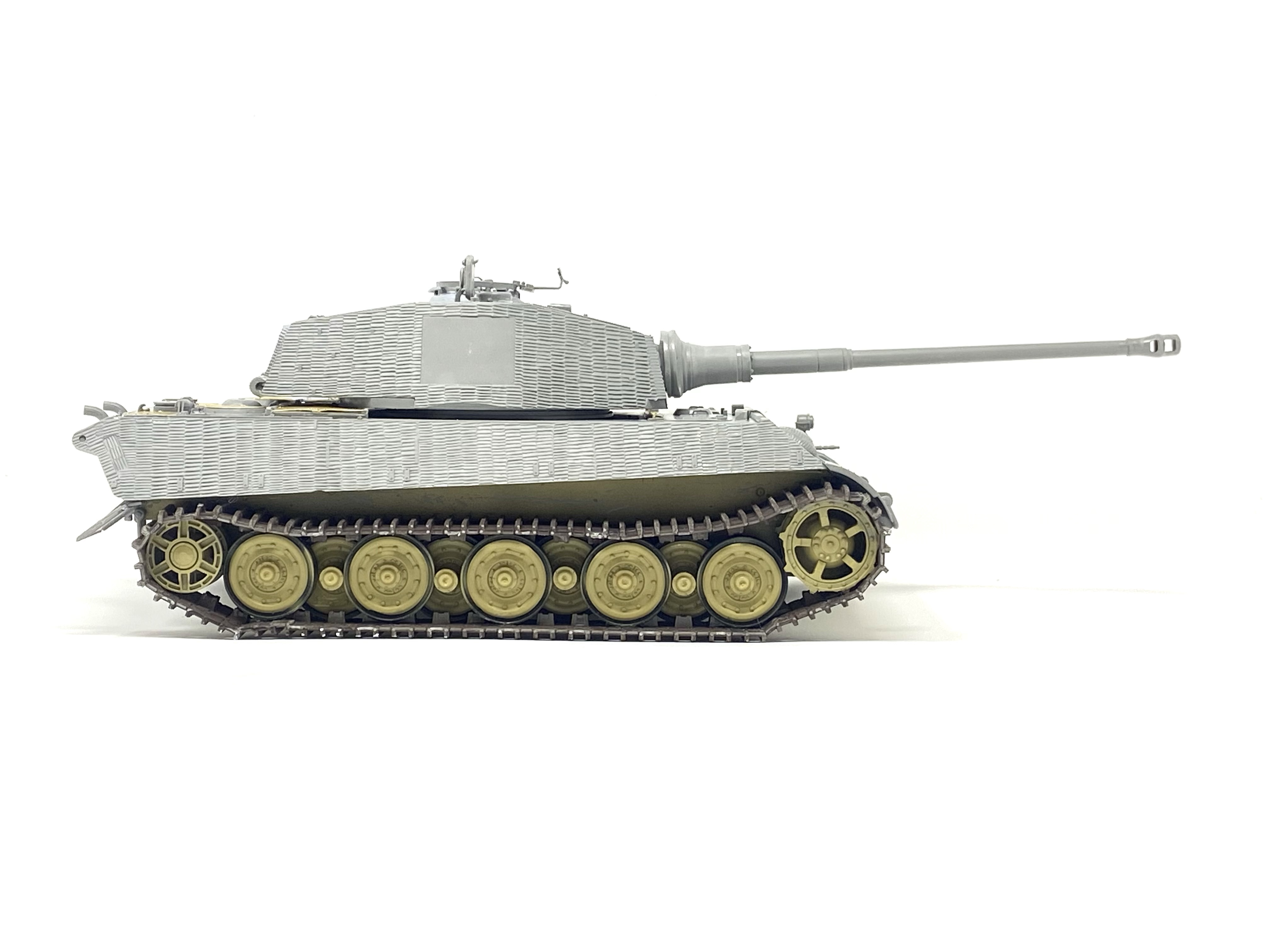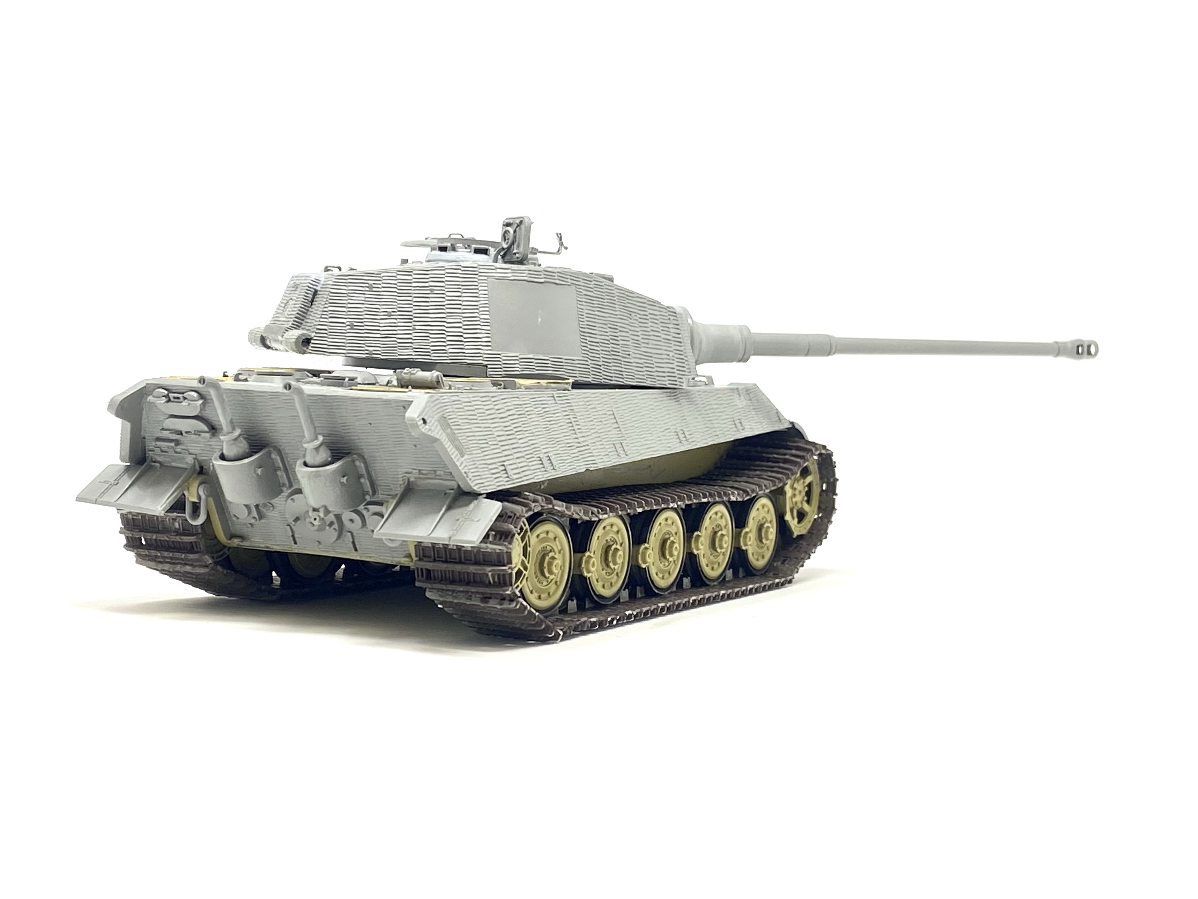 The painting phase for this project was going to be fun as the scheme that I chose was do interesting to me! The combination of red-brown, dark yellow and off white really makes the Kingtiger look purposeful and quite striking close up.
