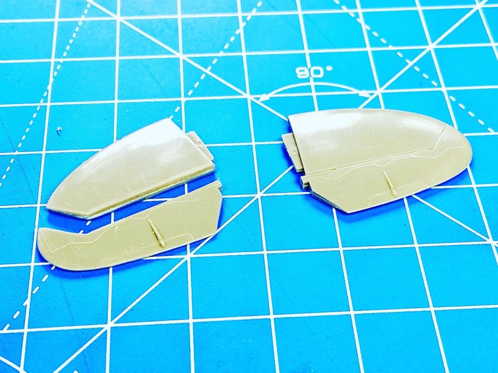 At this point I decided to pose the tail wing elevators in the dropped position. This was easy to do, just cutting along the hinge line with a scribing tool gave me a nice clean separation and the elevators were attached in the lowered position.
