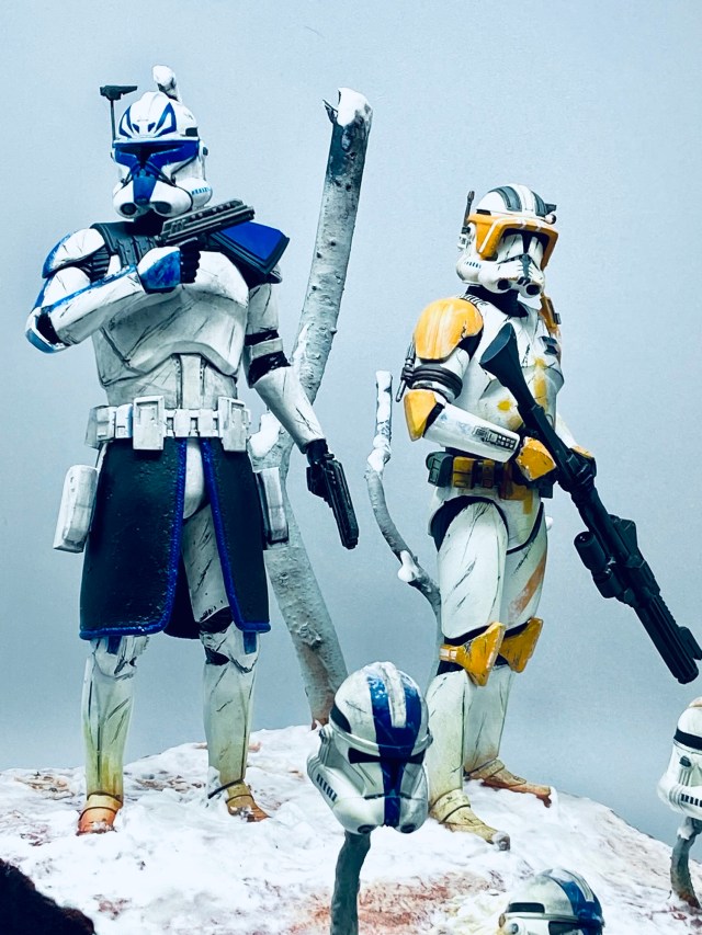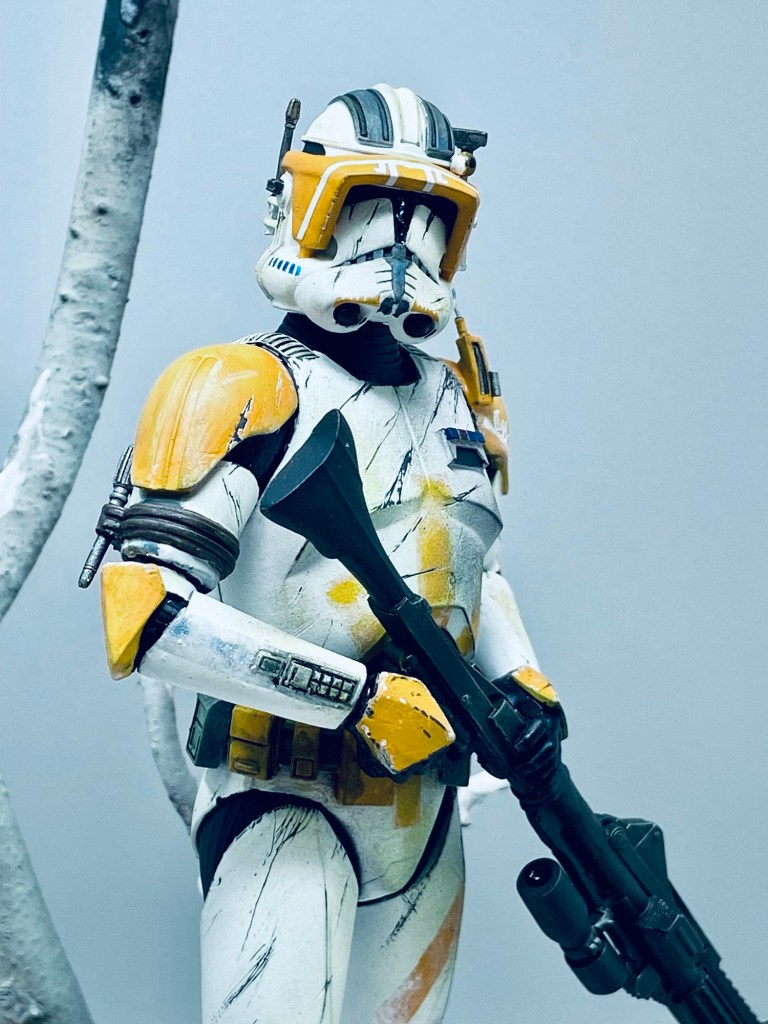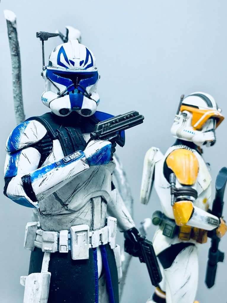 When I had the chance to acquire two 1/10 scale clone commander figures I couldn’t resist! I had my very own Commander Cody and Captain Rex. If you have not seen the Clone wars series, here is a very brief synopsis: