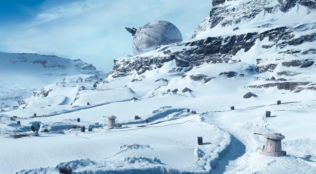 The Empire Strikes Back opens on the remote ice planet of Hoth, where after the battle of Yavin, the Rebel Alliance take refuge on the run from the evil Imperial Empire and Darth Vader, the lord of the Sith who is obsessed with finding Luke Skywalker and crushing the Rebels.