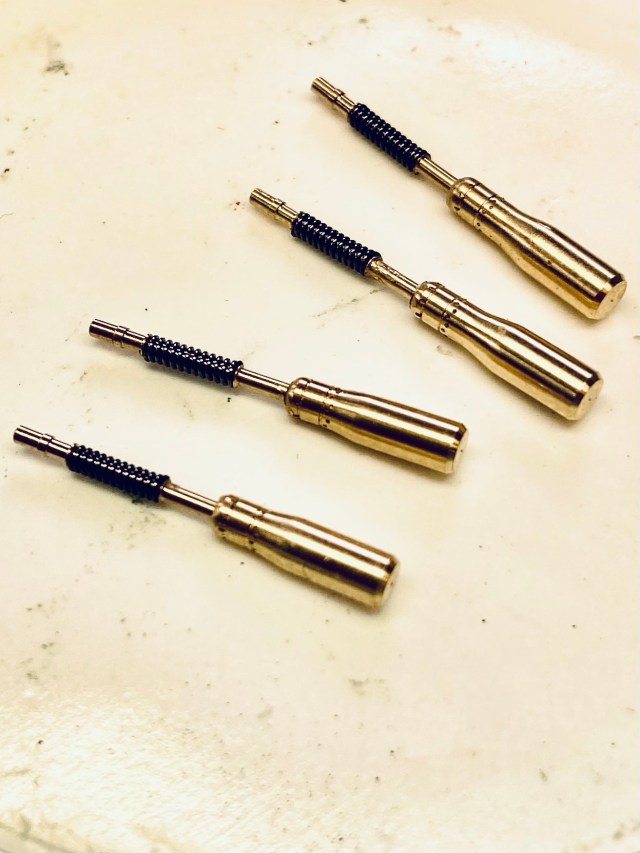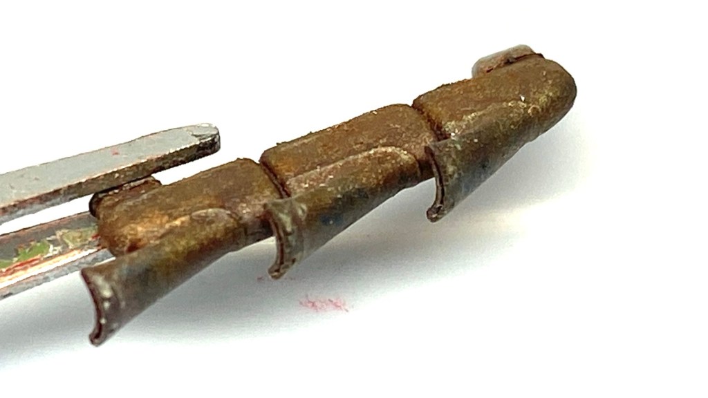 It was time to turn my attention to other details of the build so I began painting the exhaust stacks, landing gear and canopy. Work commenced on the exhaust stacks. My go to process is to prime them in metallic bronze, then add shades of rust, metallic blues and reds and blend them together to replicate heat distortion in the metal. Later, the exhaust stacks will have a light dusting of ash added to them when the model is in its final weathering process.