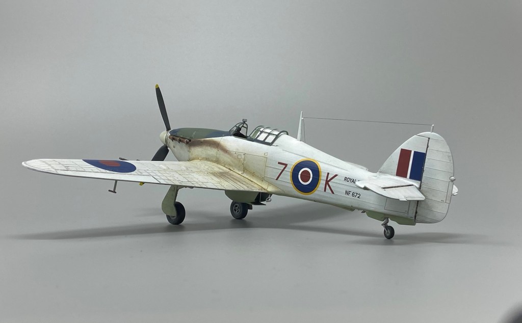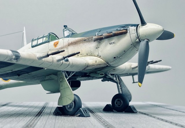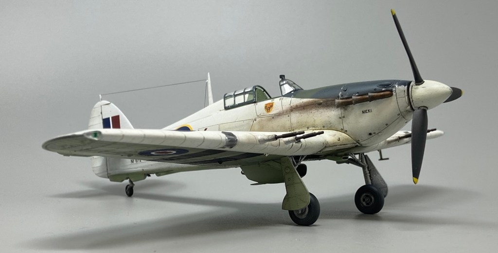 I chose to model the Italeri Sea Hurricane in the FAA Dark Sea Grey/Slate Grey camouflage scheme as I have always thought this was a great colour combination on a fighter aircraft. The Italeri kit is a great model and I had wanted another, but they sadly went out of production. I had wished for a second Sea Hurricane as one other scheme that I had wanted to portray on a Sea Hurricane was the all white upper camouflage scheme seen on Sea Hurricanes that were deployed to the escort carriers in the North Atlantic.